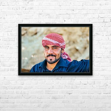 Get this artwork "Young man in Syria smiles during a sunny day outdoors" in a framed print.