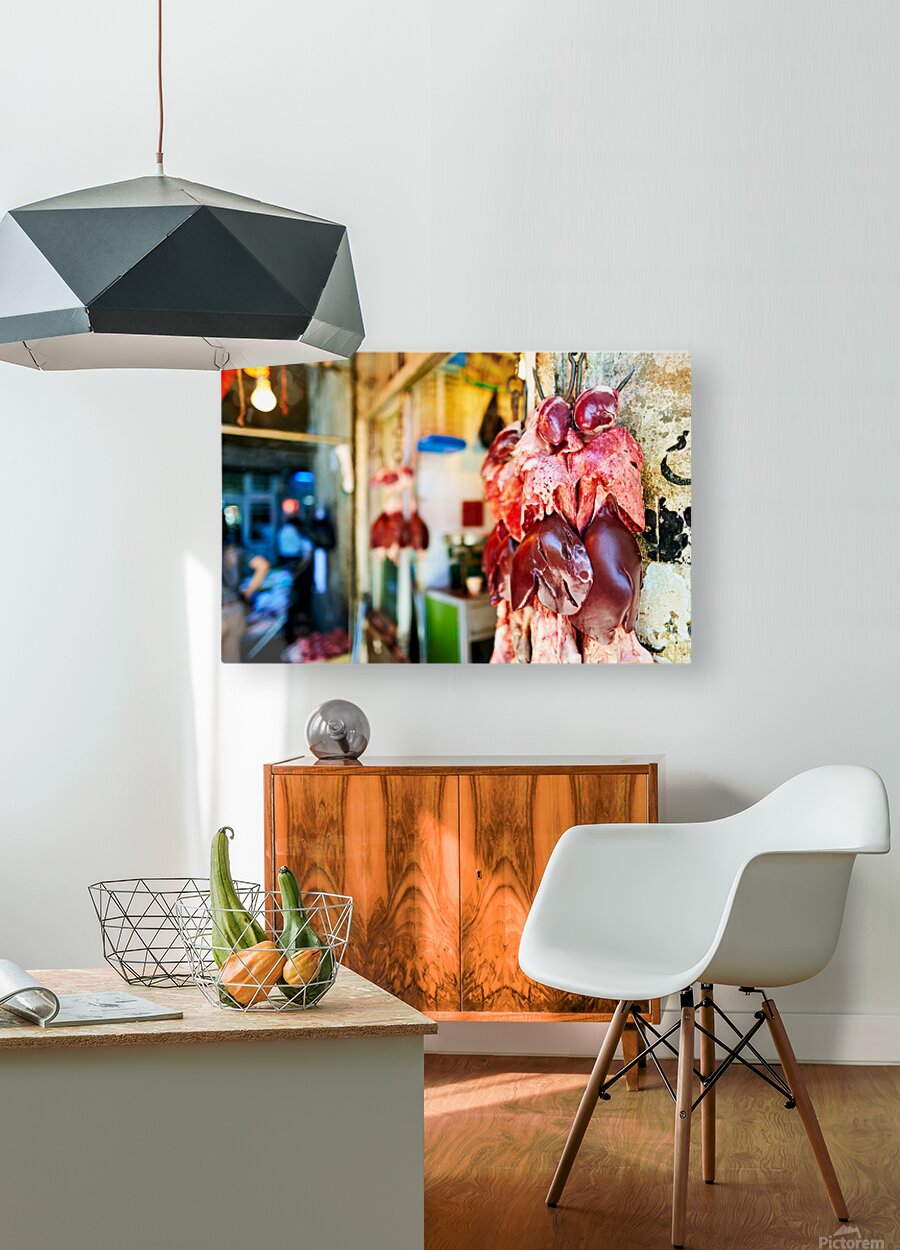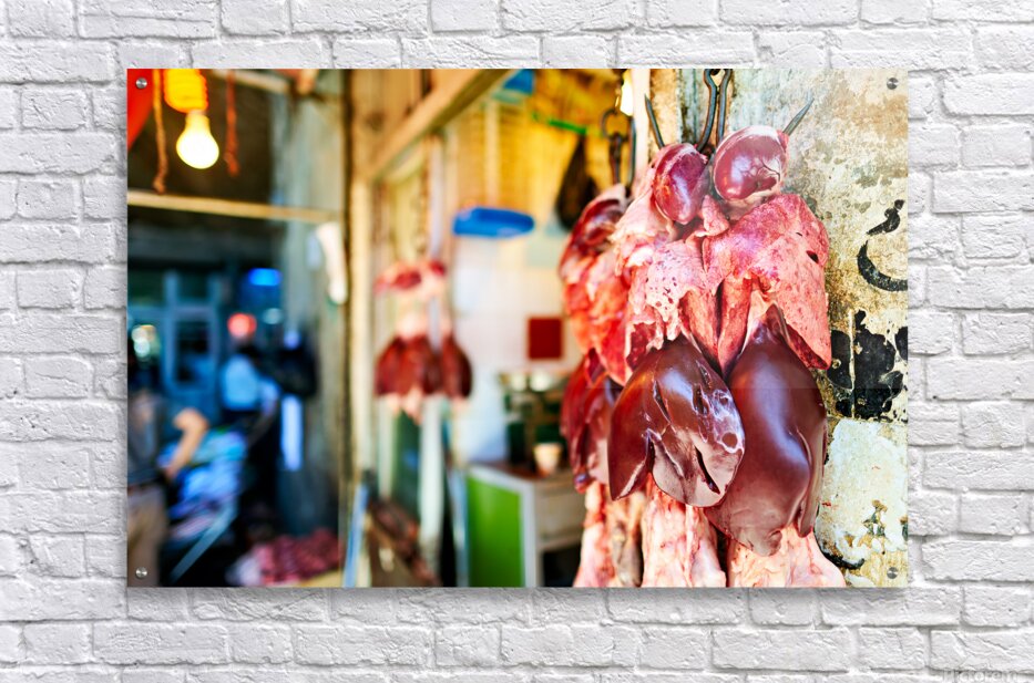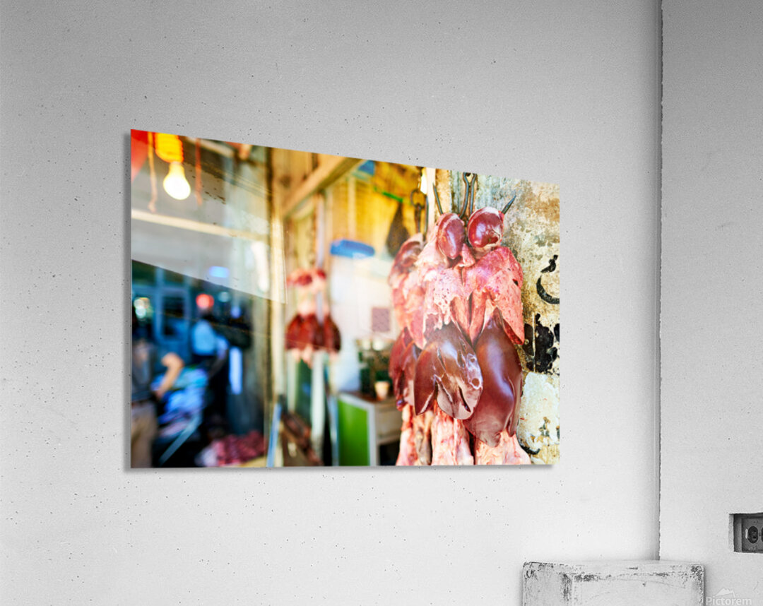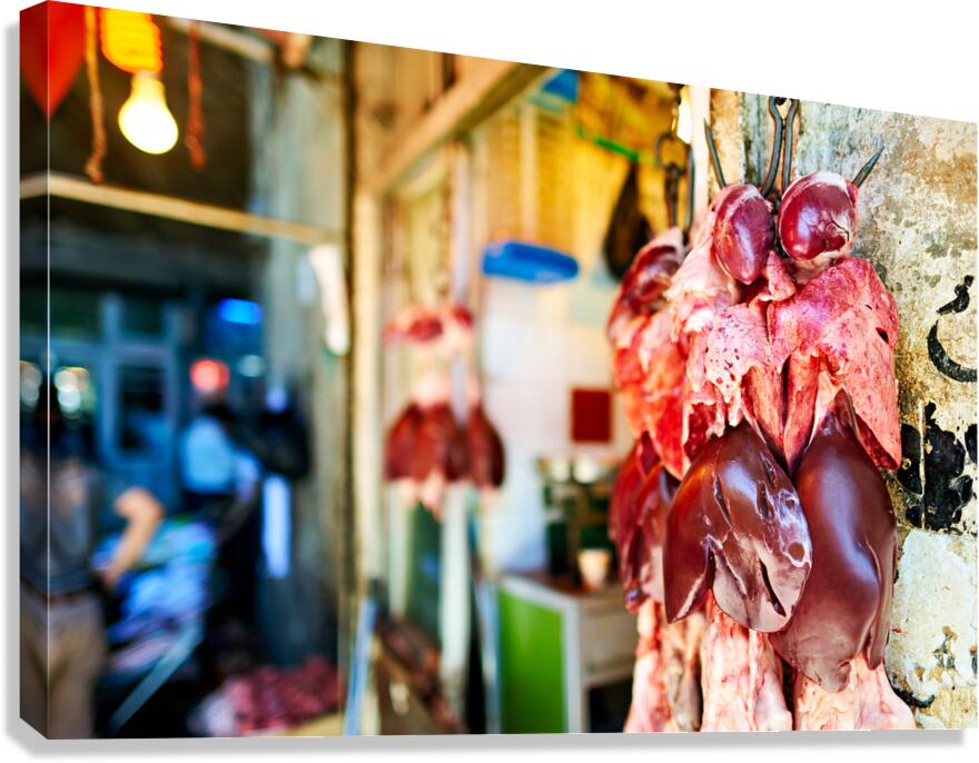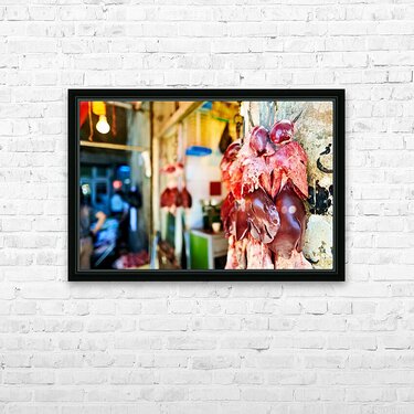 Get this artwork "Butcher displays meat at souq in Aleppo Syria during the day" in a framed print.