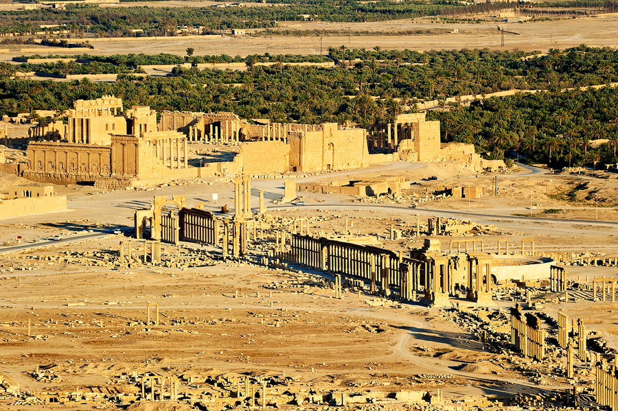 Palmyra an ancient city in Syria with its historic ruins and desert landscape under a clear sky.
