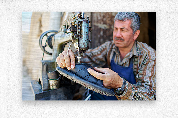 Get this artwork "Shoemaker working in Aleppo souq in Syria" in a framed print.