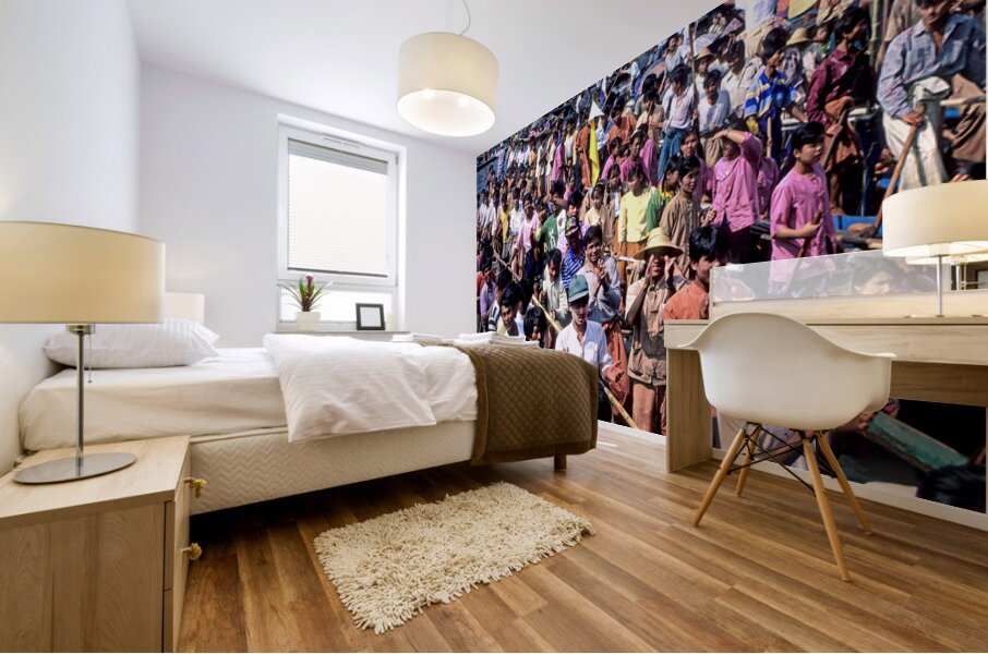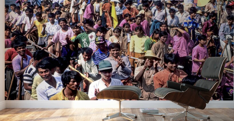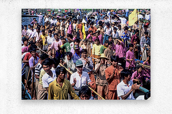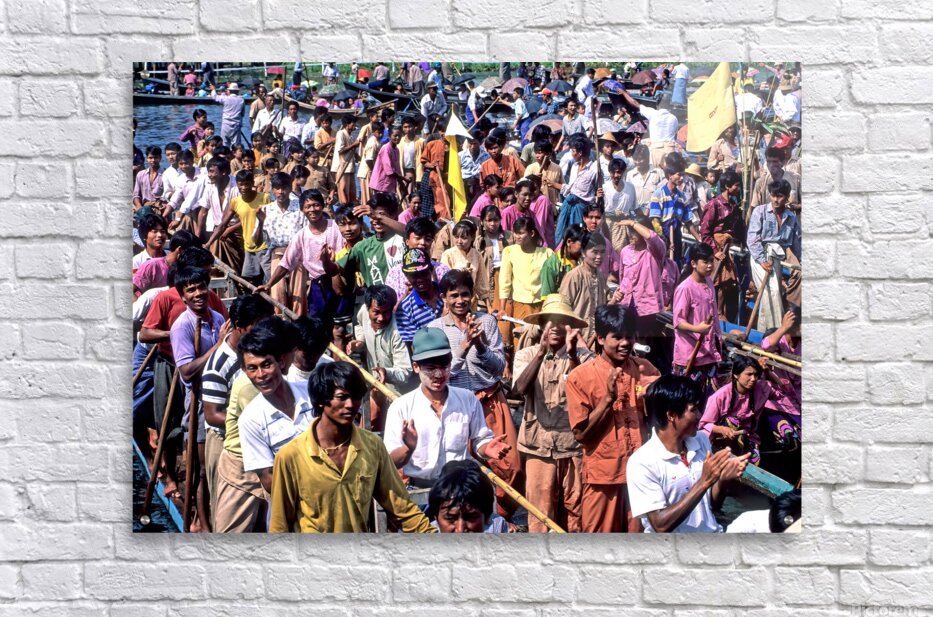 ABOUT THIS ARTWORK: PEOPLE GATHER ON BOATS DURING THE INLE LAKE FESTIVAL IN MYANMAR