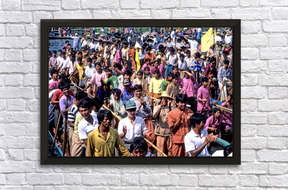 People gather on boats during the Inle Lake Festival in Myanmar. Joyful participants celebrate with music and clapping in the lively atmosphere.