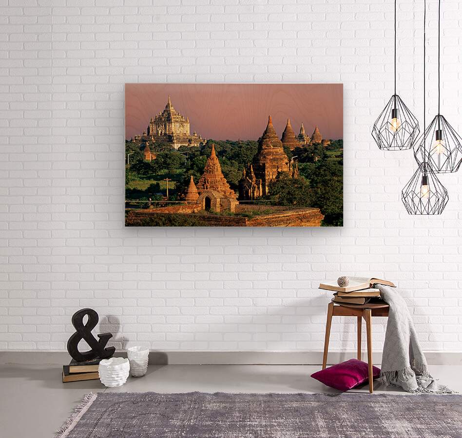ABOUT THIS ARTWORK: TEMPLES IN BAGAN DURING SUNSET WITH ANCIENT ARCHITECTURE VISIBLE