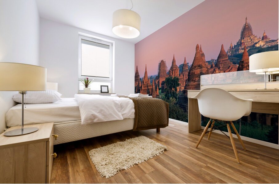 ABOUT THIS ARTWORK: TEMPLES IN BAGAN AT DUSK WITH A CLEAR SKY OVER MYANMAR