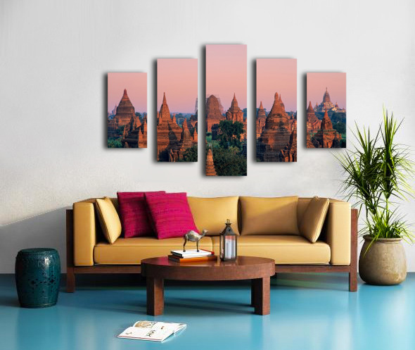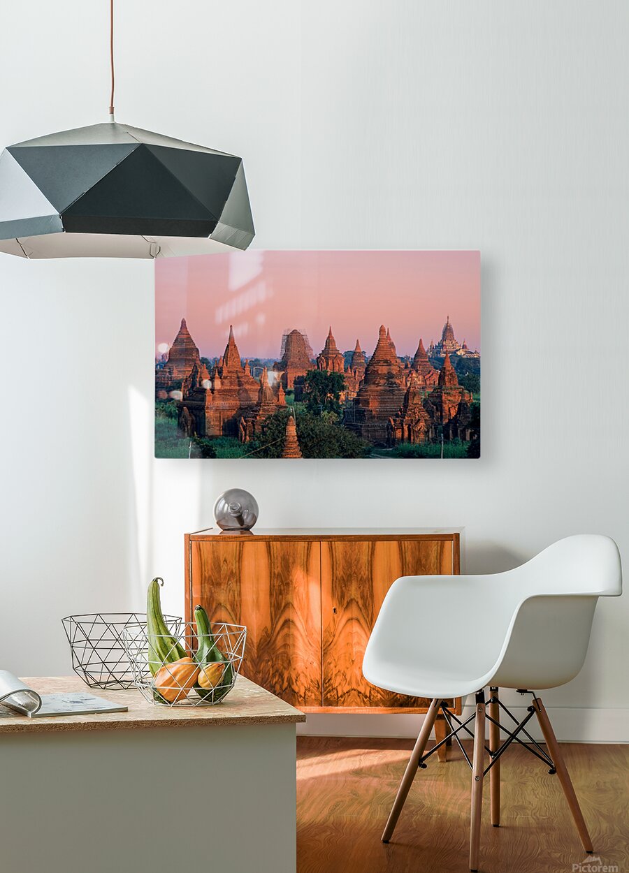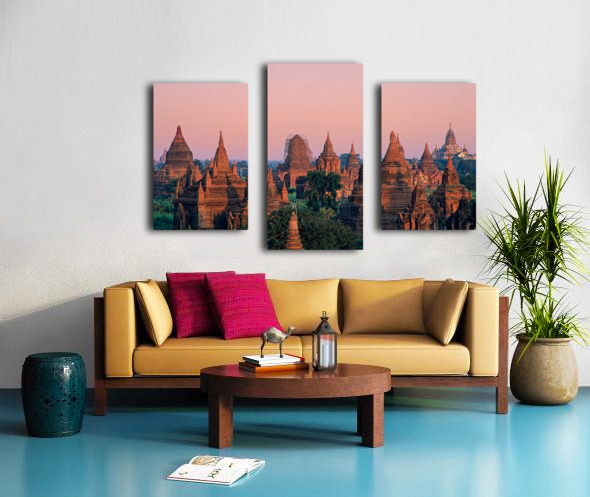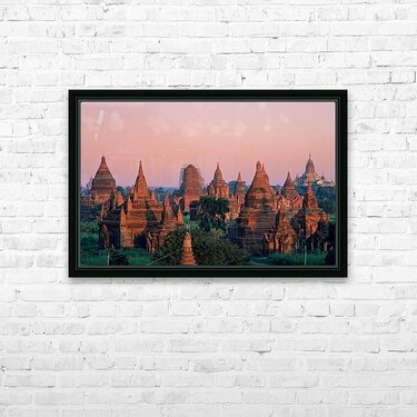 Get this artwork "Temples in Bagan at dusk with a clear sky over Myanmar" in a framed print.