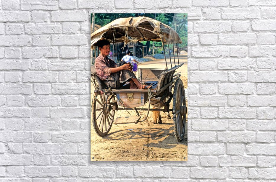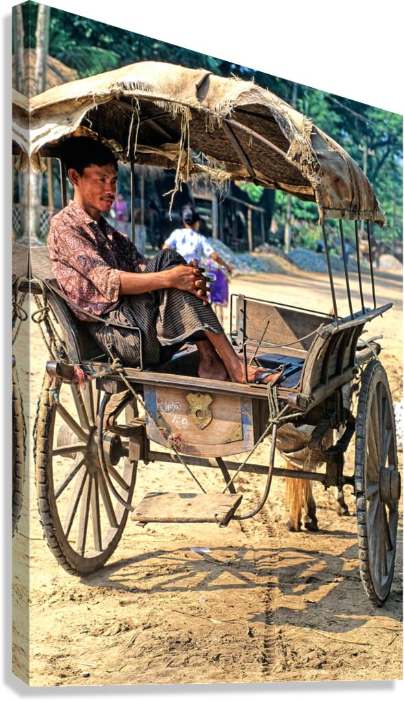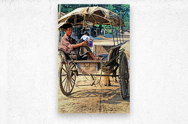 ABOUT THIS ARTWORK: MAN RESTS ON CART IN MYANMAR DURING WARM DAYTIME