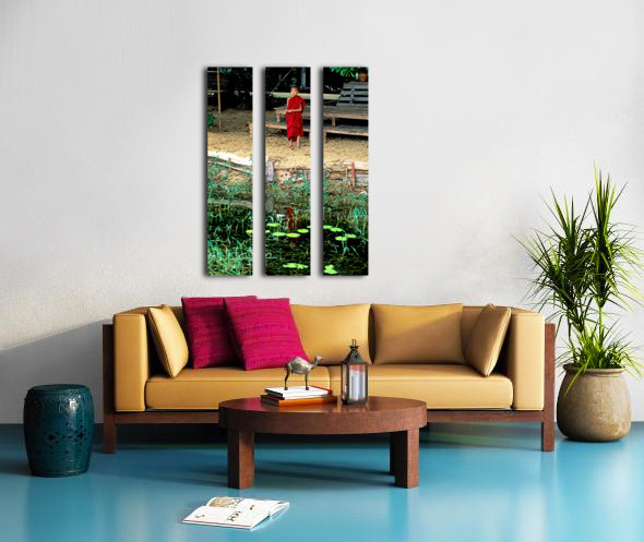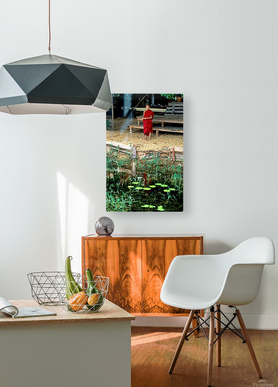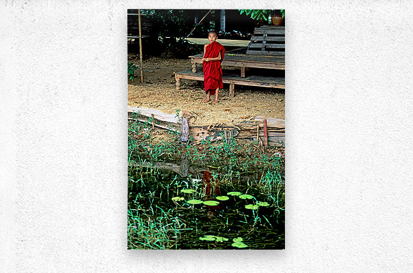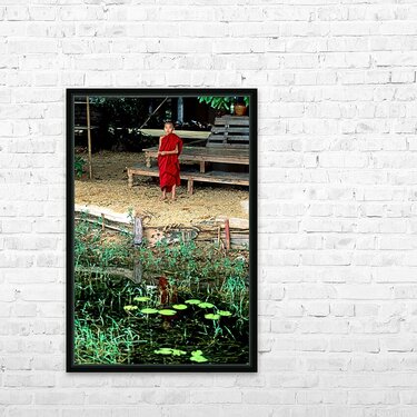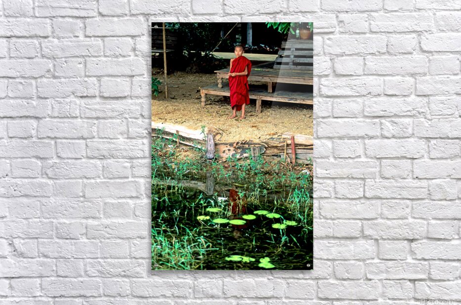 ABOUT THIS ARTWORK: YOUNG MONK STANDS BY WATER IN MYANMAR DURING DAYTIME