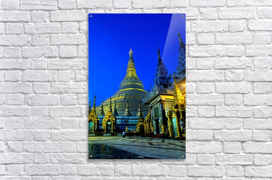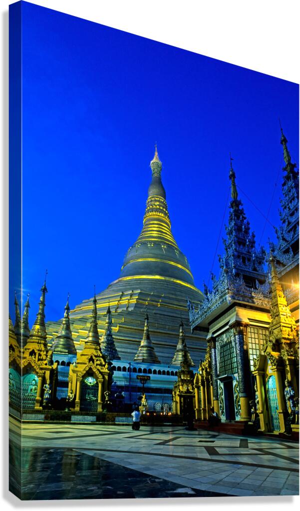 ABOUT THIS ARTWORK: POPULAR SCHWEDAGON PAYA AT NIGHT IN YANGON MYANMAR