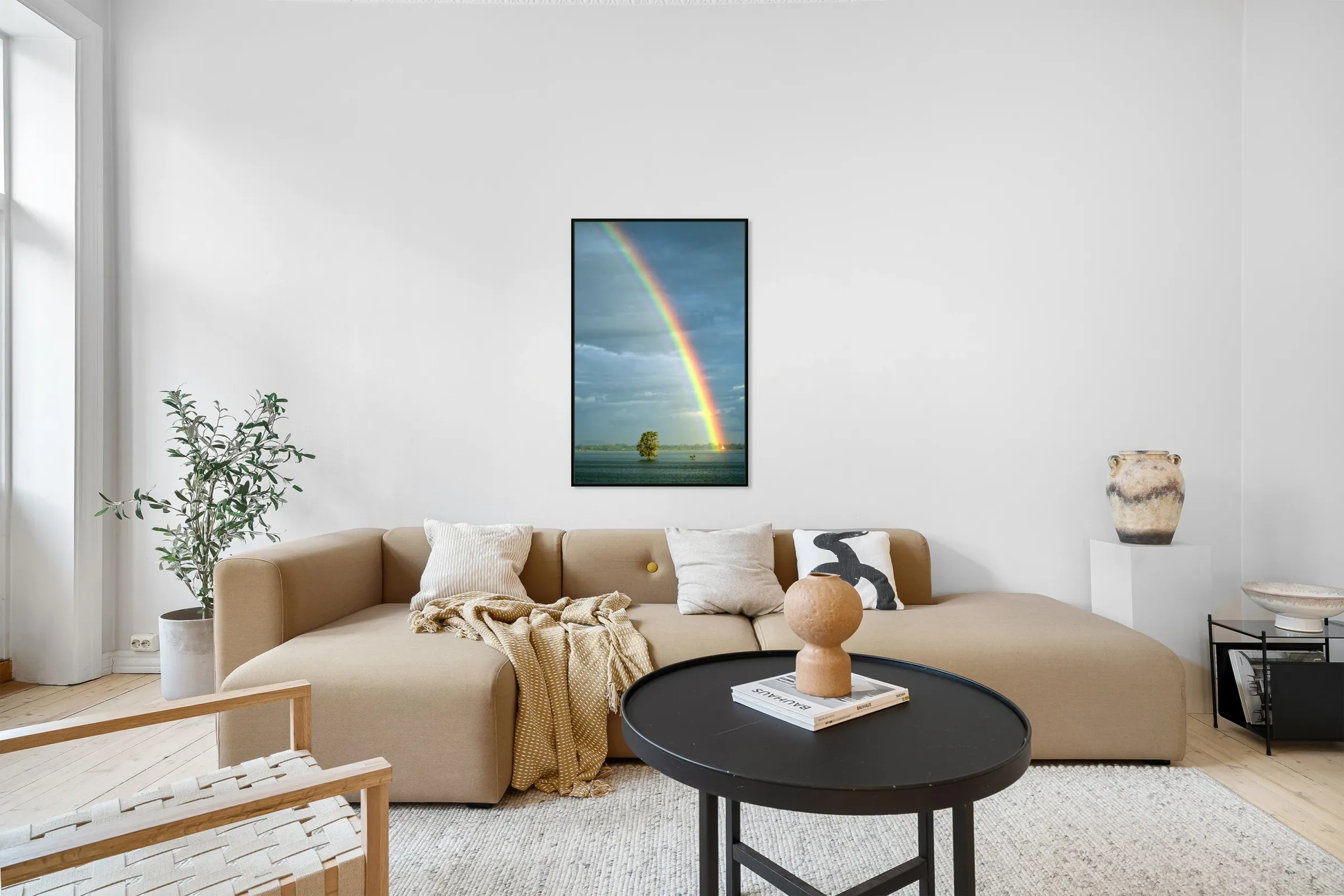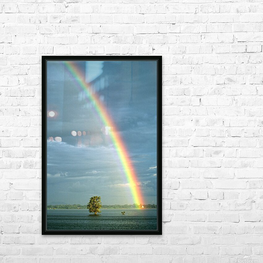 Rainbow shines over landscape in Myanmar after rainfall Frame print