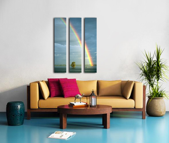 ABOUT THIS ARTWORK: RAINBOW SHINES OVER LANDSCAPE IN MYANMAR AFTER RAINFALL