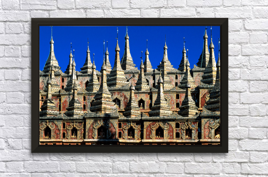 Visitors admire the unique architecture of Mohnyin Thambuddhei Paya located in Monywa Myanmar. It features many spires and colorful artwork.
