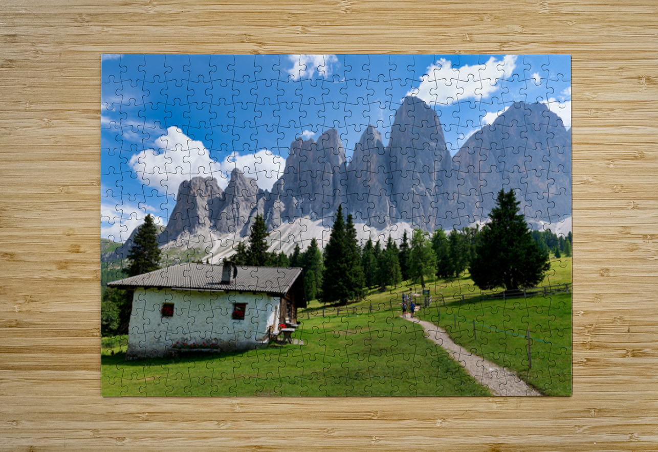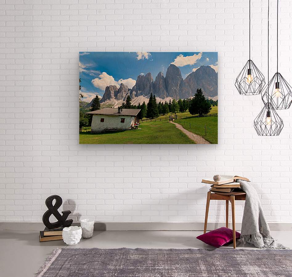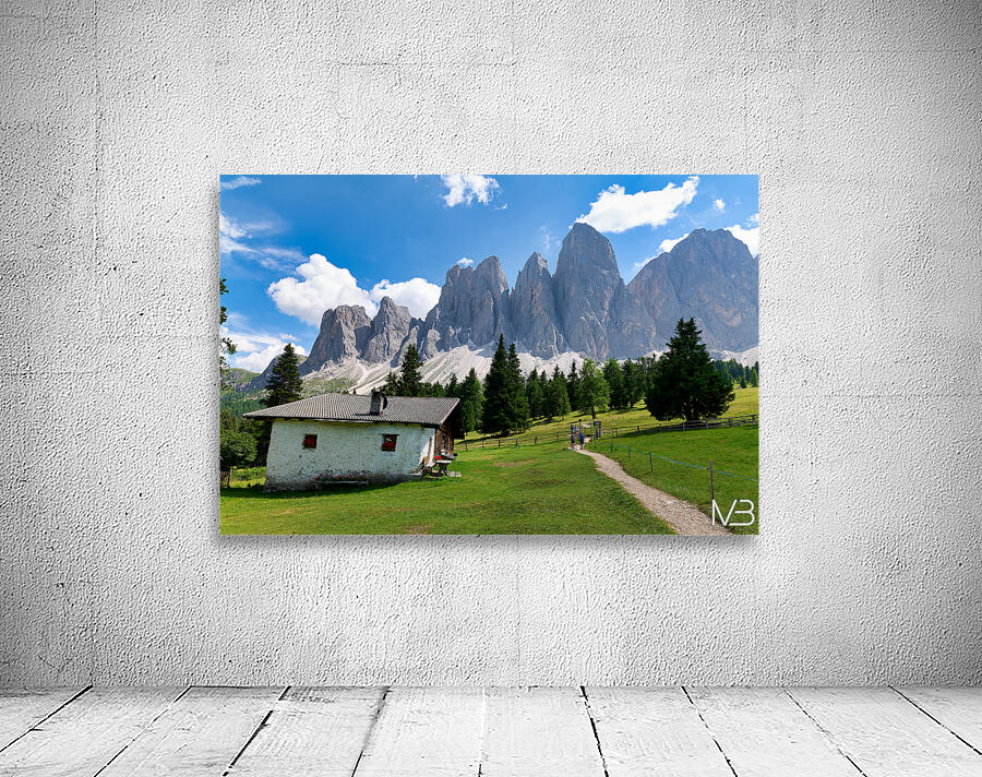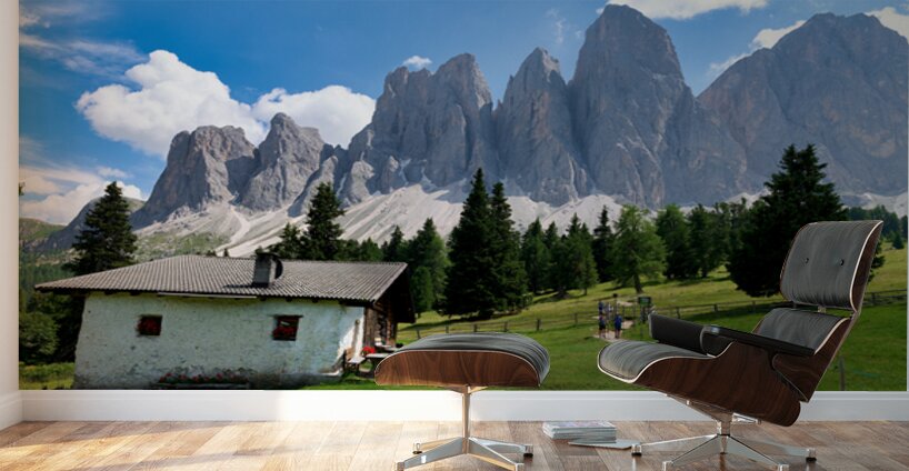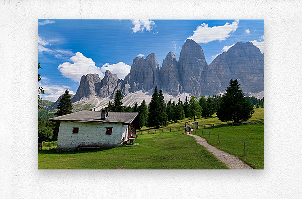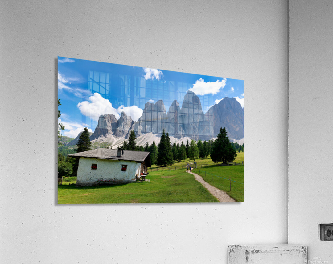 "Panorama of Dolomites in Val di Funes South Tyrol Italy" in a framed print.