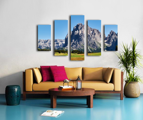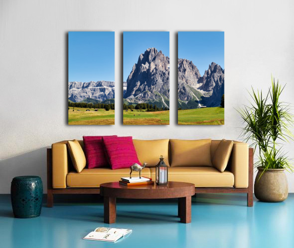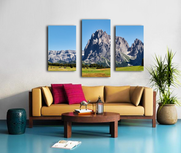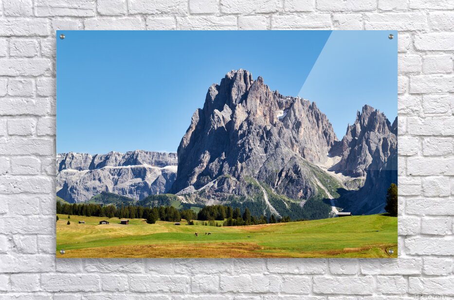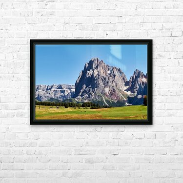 Sassolungo mountain peak view at Seiser Alm in Italy Picture Frame Printing