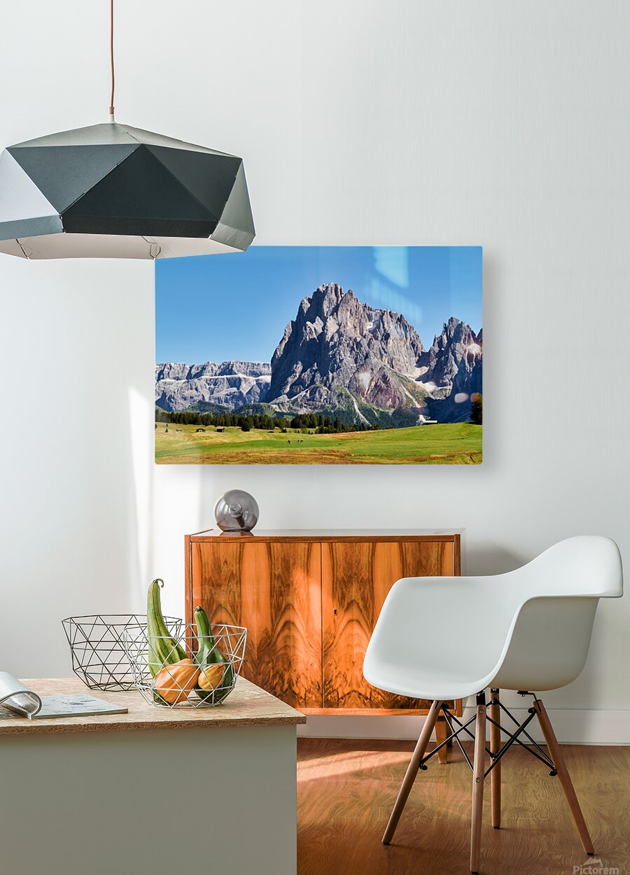 ABOUT THIS ARTWORK: SASSOLUNGO MOUNTAIN PEAK VIEW AT SEISER ALM IN ITALY