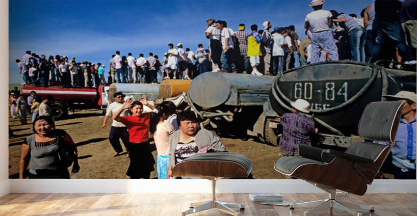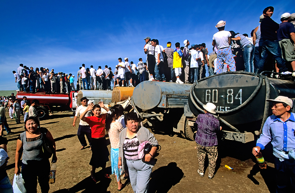 People gather at the Naadam festival in Ulaanbaatar participating in various activities and celebrating with friends and family in the sun.