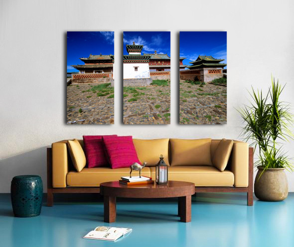 ABOUT THIS ARTWORK: ERDENE ZUU MONASTERY STANDS IN MONGOLIA UNDER A BLUE SKY