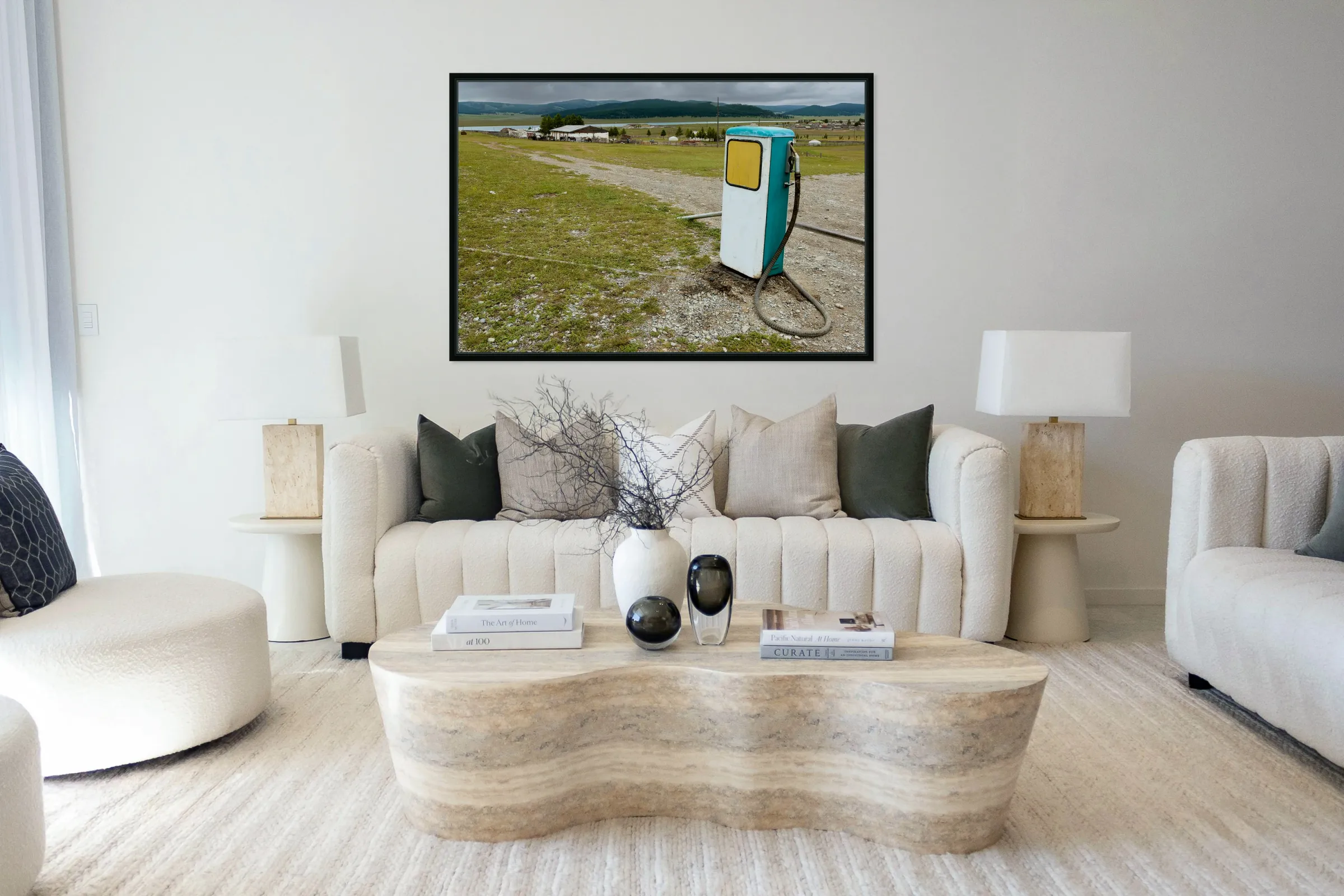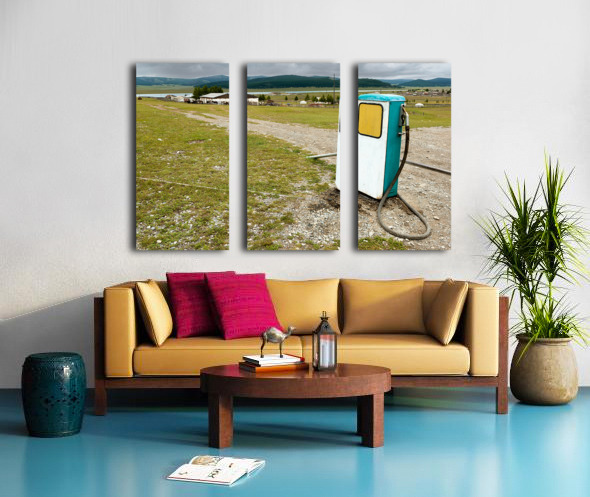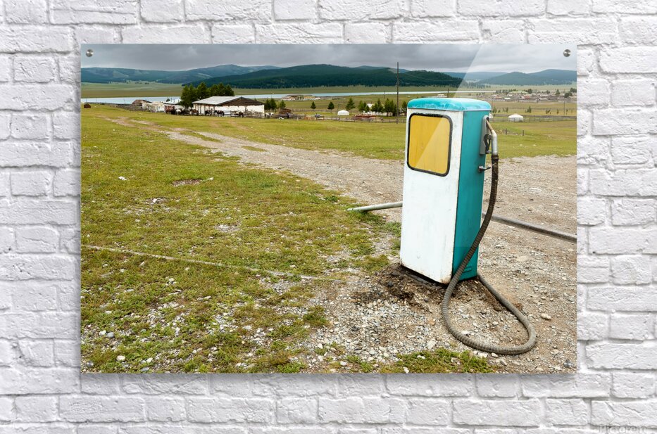 ABOUT THIS ARTWORK: OLD STYLE SOVIET GAS STATION IN MONGOLIA NEAR OPEN FIELDS