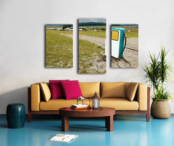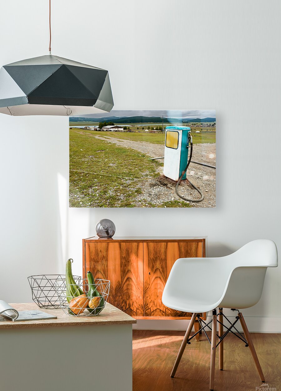 Get this artwork "Old style soviet gas station in Mongolia near open fields" in a framed print.