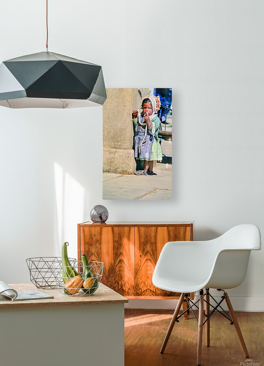 Young child in traditional attire appears to be smoking. Picture Frame Printing