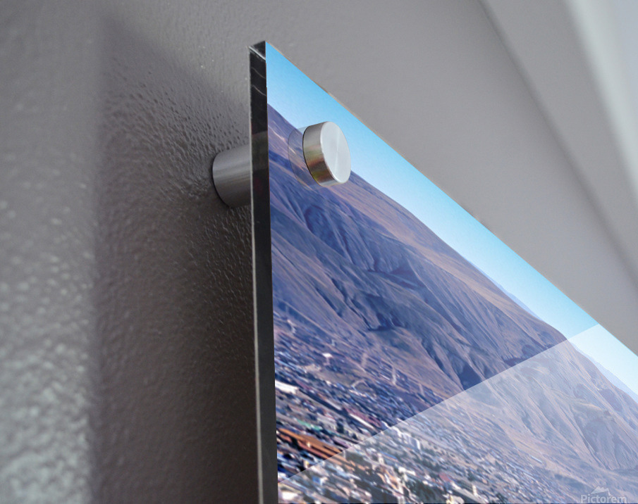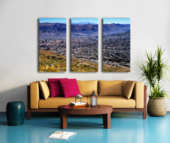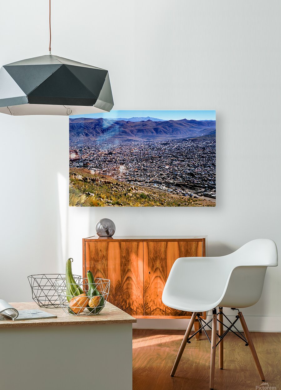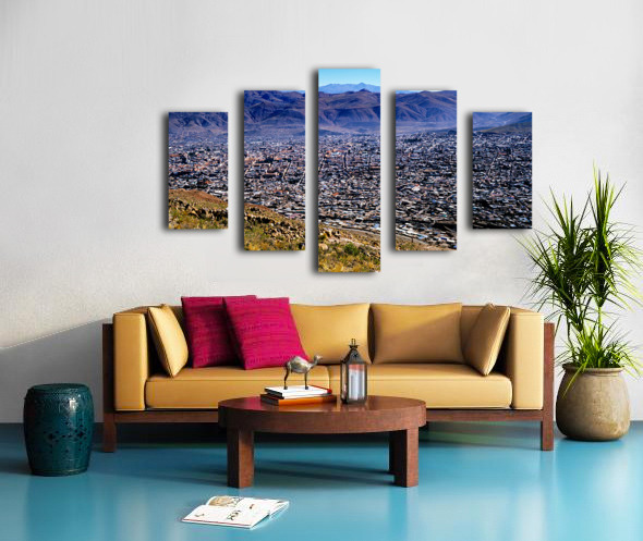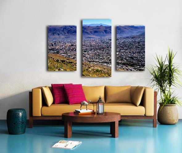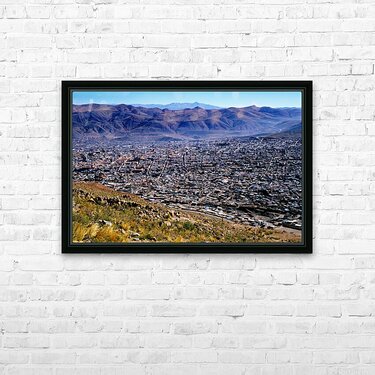 Panoramic view of a sprawling city in a mountain valley. Frame print