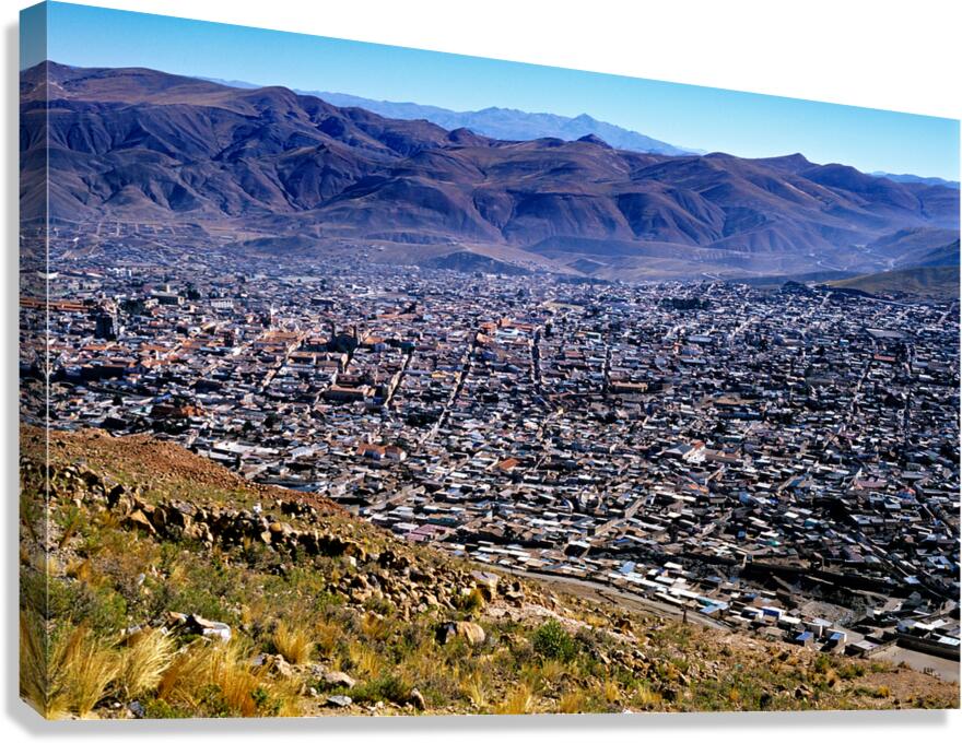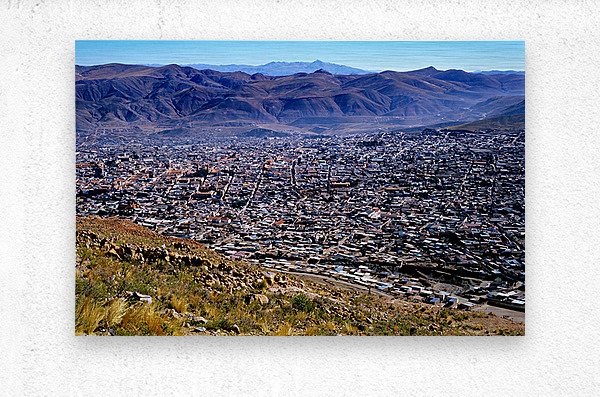 Potosí Bolivia: A panoramic view of the historic mining city densely built into the Andean valley reflecting centuries of growth.