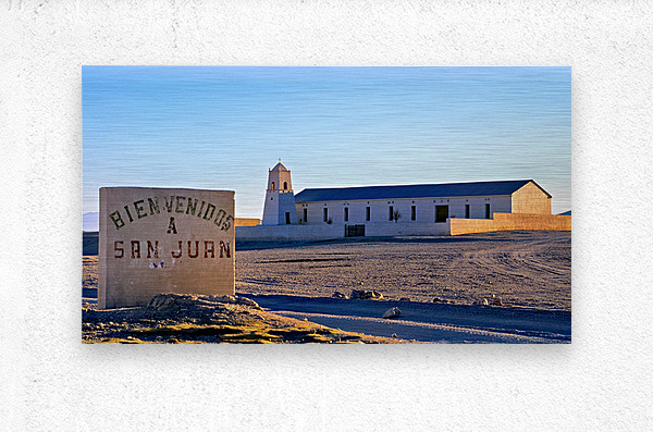 ABOUT THIS ARTWORK: SAN JUAN WELCOME SIGN AND DESERT CHURCH BUILDING.