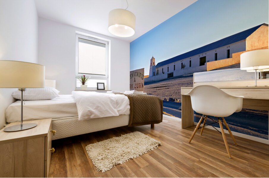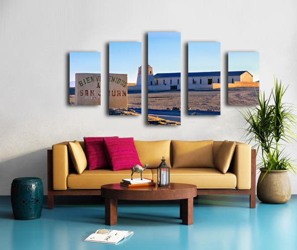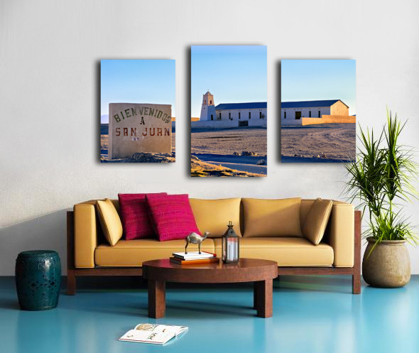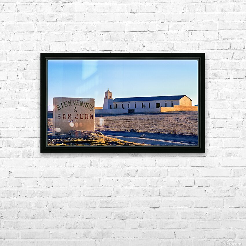 San Juan welcome sign and desert church building. Picture Frame Printing