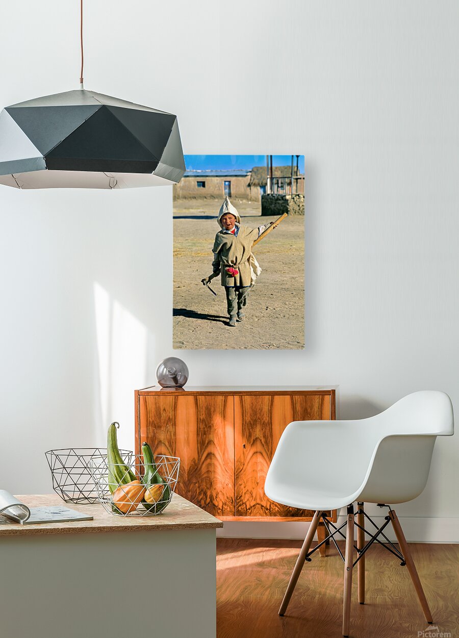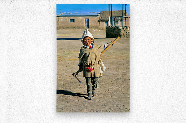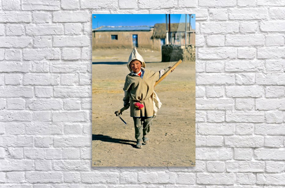 Indigenous boy with tools walks through a dusty village. Marco Brivio Puzzle printing