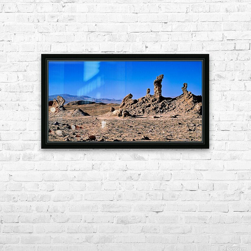 Arid desert with unusual rock pillars against a blue sky. Picture Frame Printing
