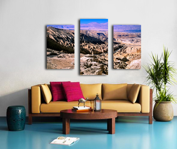 Eroded desert landscape with a road winding through mountains. Frame print