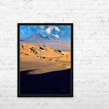 "Dramatic desert landscape with mountains rock formations and s" in a framed print.