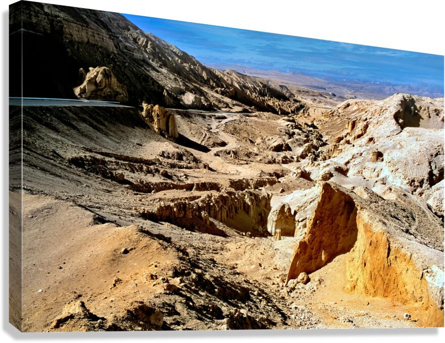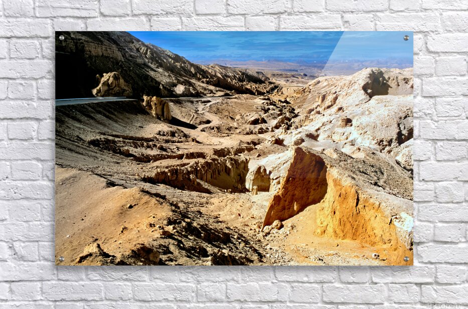 Dramatic arid mountain landscape with a winding road. Picture Frame Printing