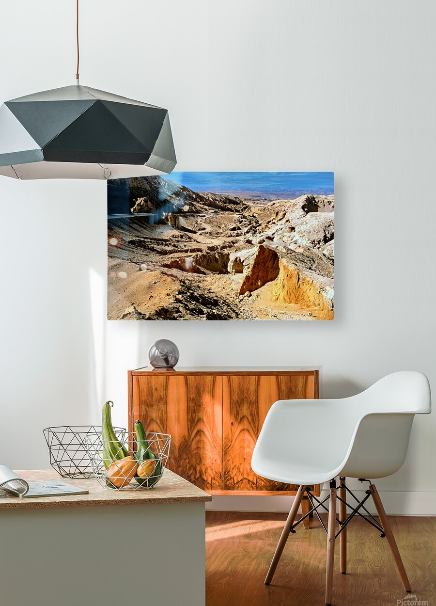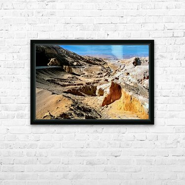 Dramatic arid mountain landscape with a winding road. Frame print