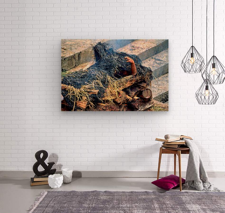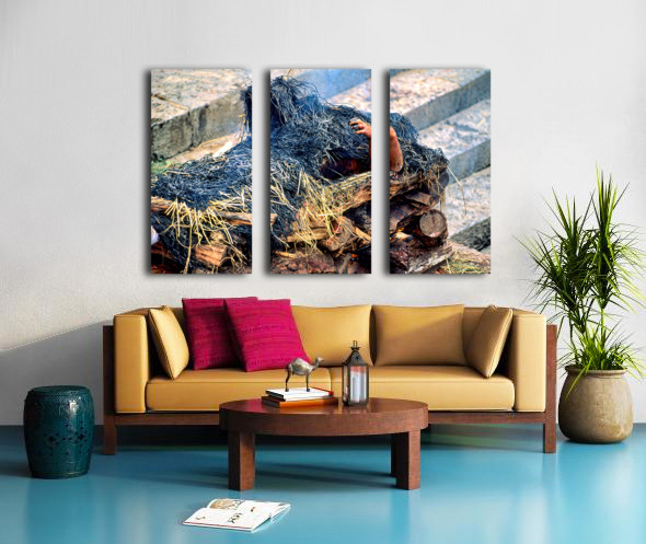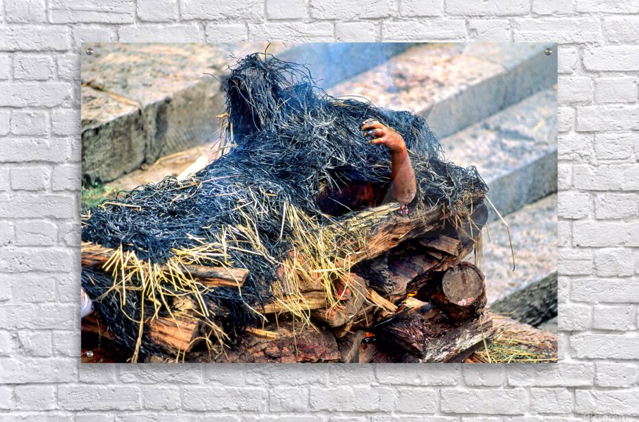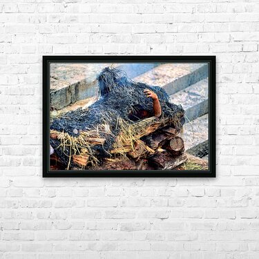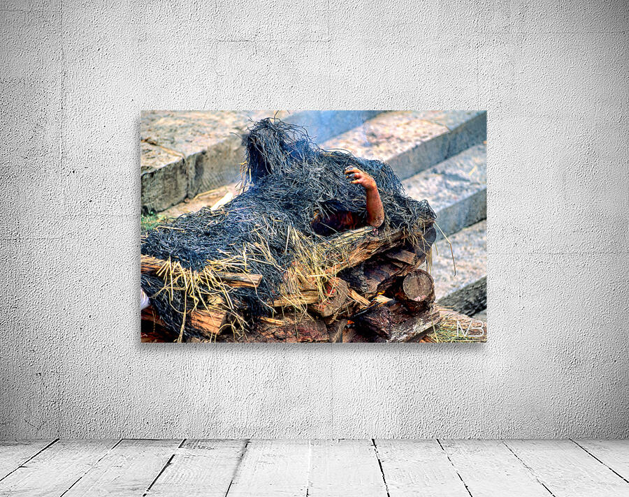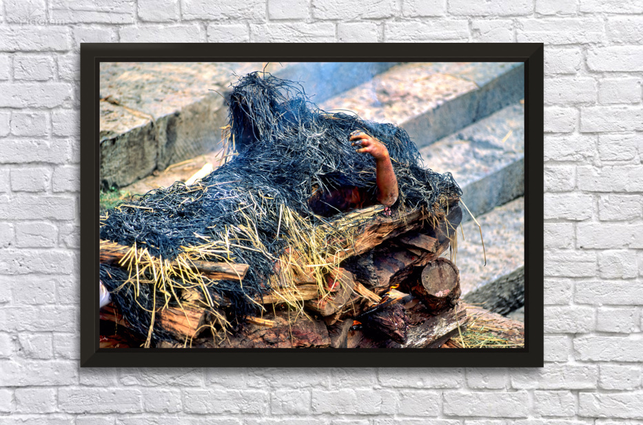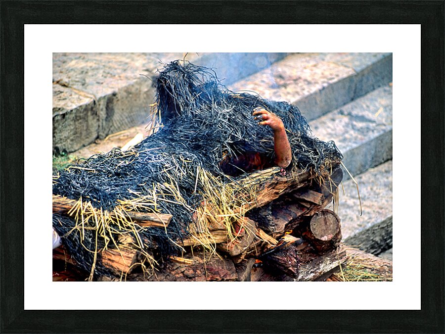 "Cremation ceremony at Pashupatinath in Kathmandu Nepal" in a framed print.
