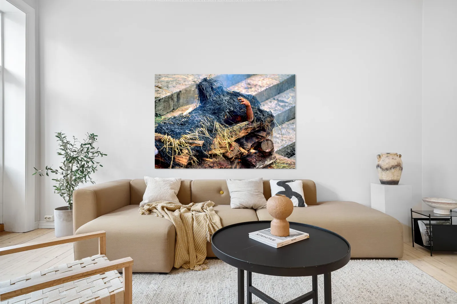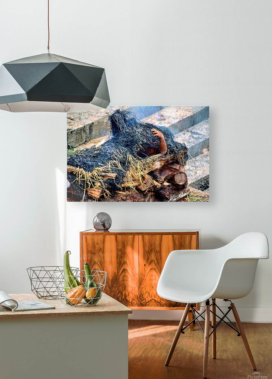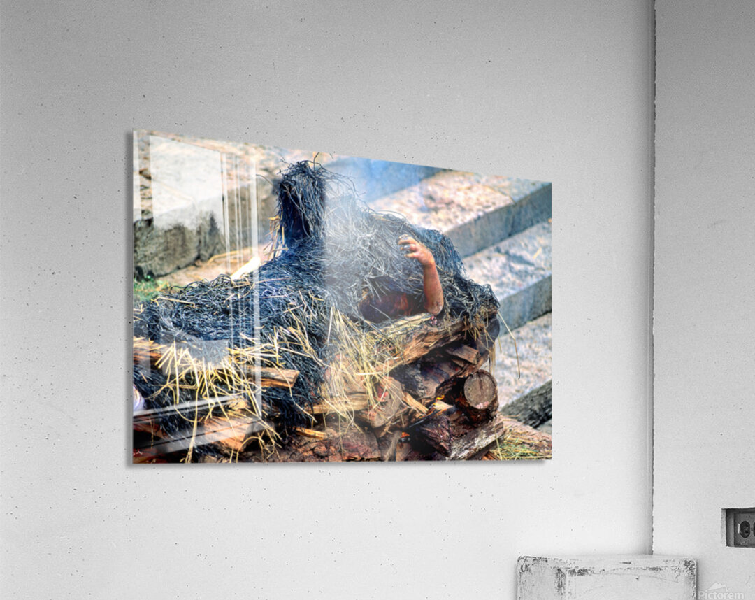 "Cremation ceremony at Pashupatinath in Kathmandu Nepal" in a framed print.