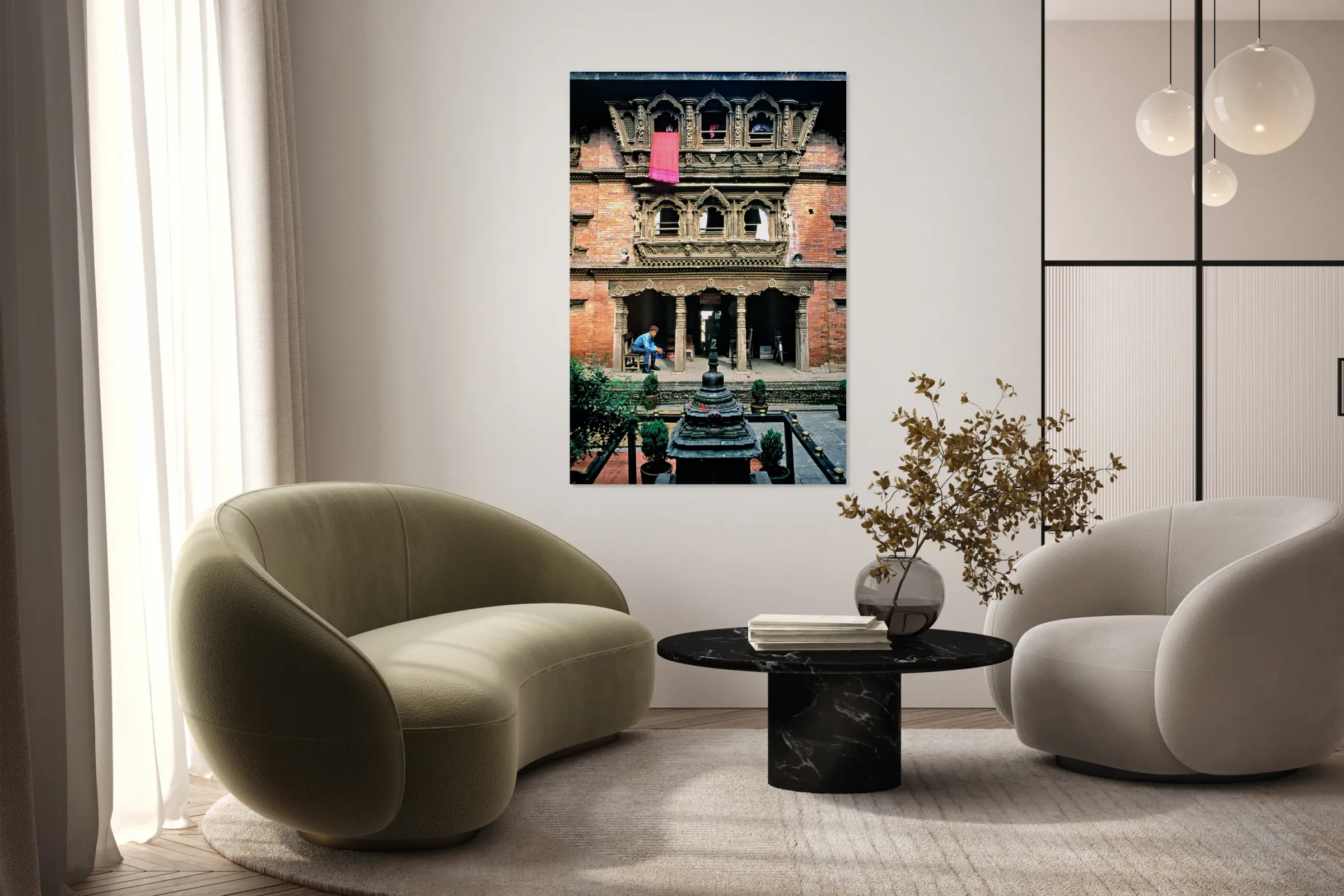 Kumari goddess house in Kathmandu shows architecture and daily l Picture Frame Printing