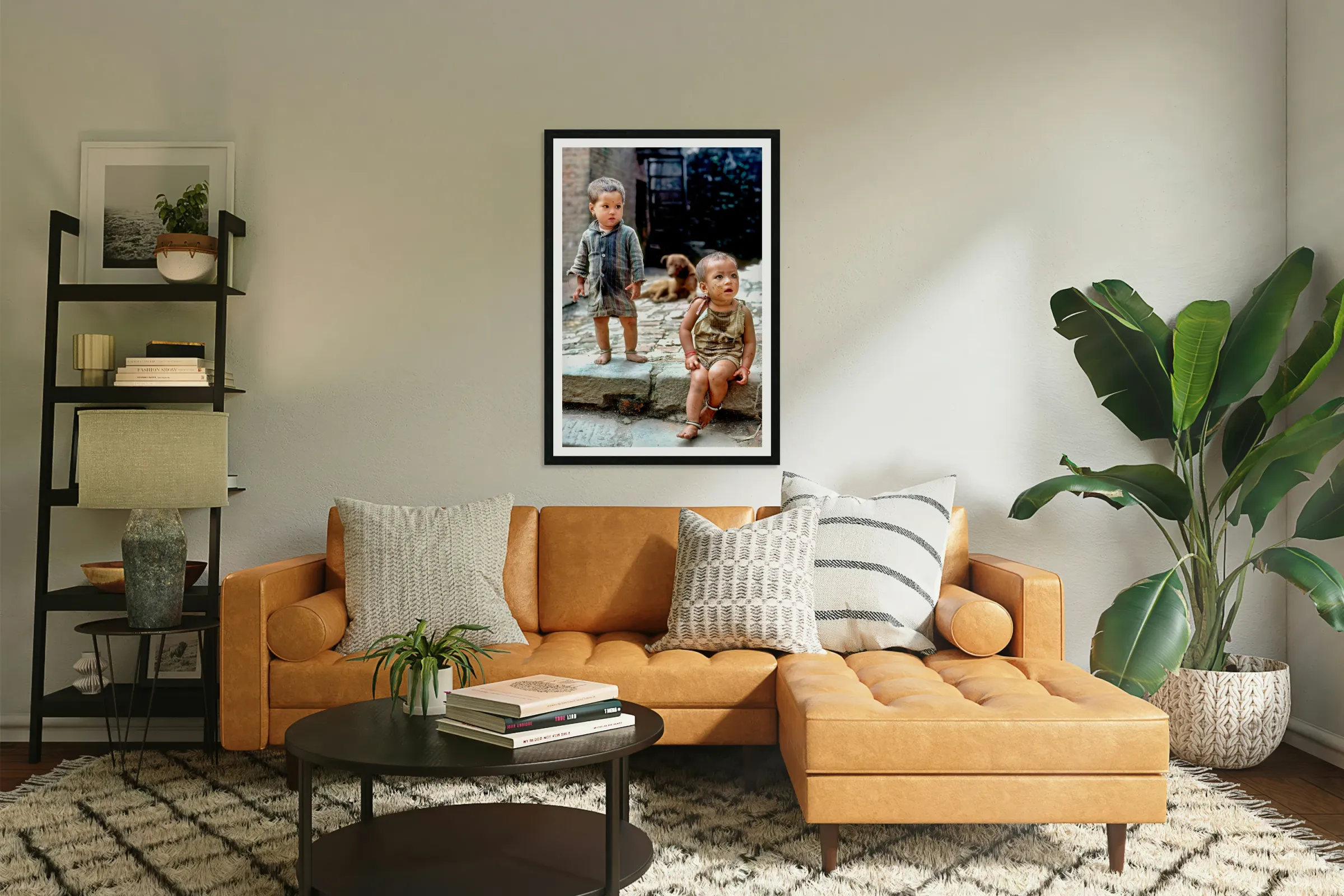 ABOUT THIS ARTWORK: CHILDREN PLAYING IN A NARROW STREET IN KATHMANDU NEPAL DURING D