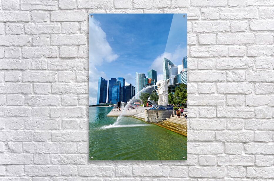 ABOUT THIS ARTWORK: PEOPLE WALK NEAR BRIDGE IN SINGAPORE FINANCIAL DISTRICT BY LUSH