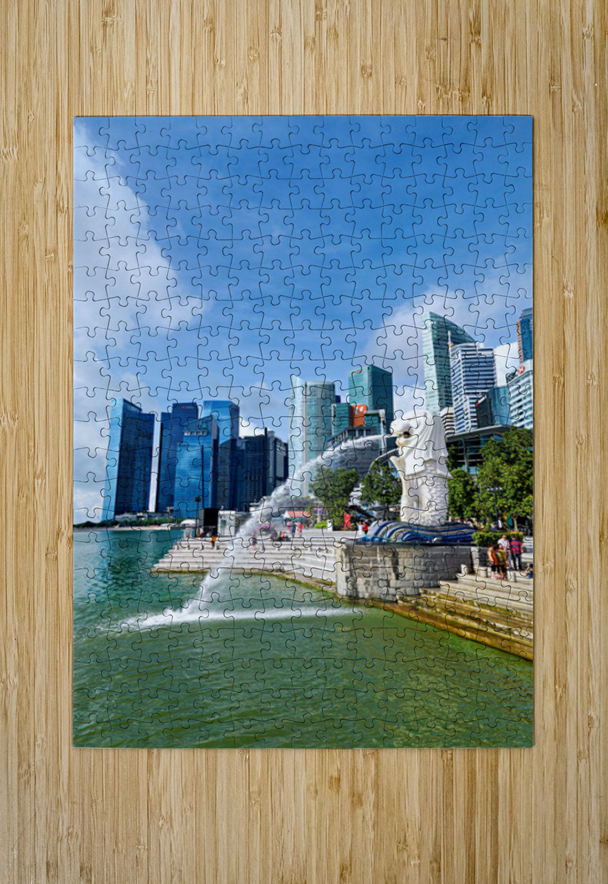 People walk near bridge in Singapore financial district by lush  Marco Brivio Puzzle printing