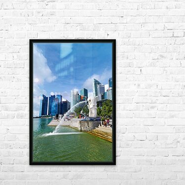 People walk near bridge in Singapore financial district by lush  Frame print