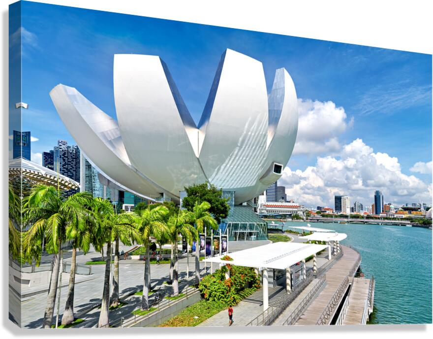 Visitors enjoy view of ArtScience Museum in Singapore near water Marco Brivio Puzzle printing