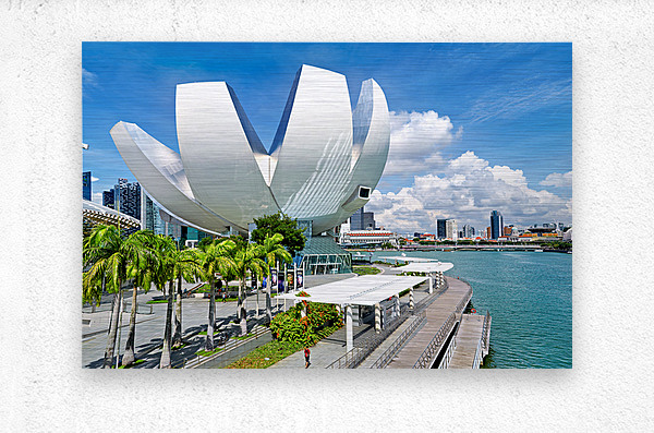 ABOUT THIS ARTWORK: VISITORS ENJOY VIEW OF ARTSCIENCE MUSEUM IN SINGAPORE NEAR WATER