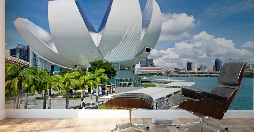 Get this artwork "Visitors enjoy view of ArtScience Museum in Singapore near water" in a framed print.
