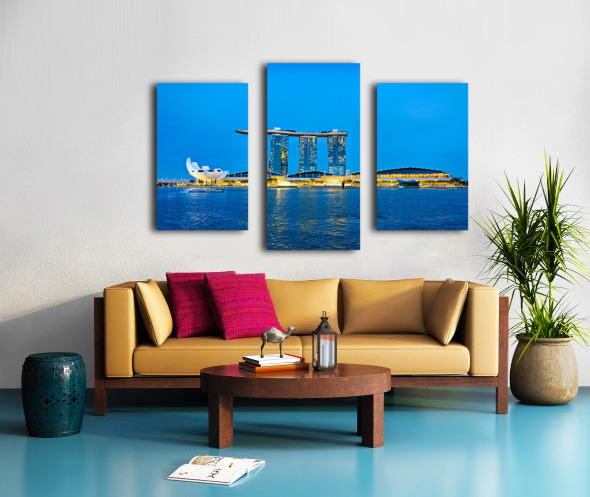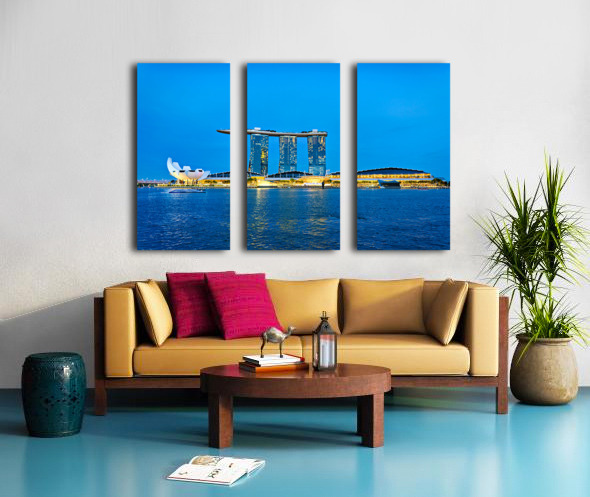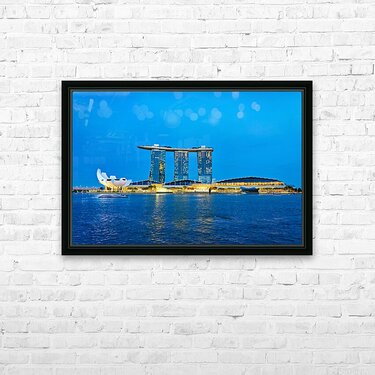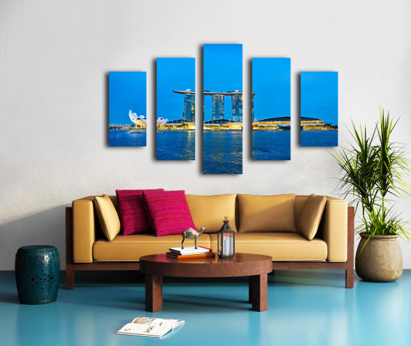Get this artwork "City skyline at sunset over Marina Bay with reflections on water" in a framed print.