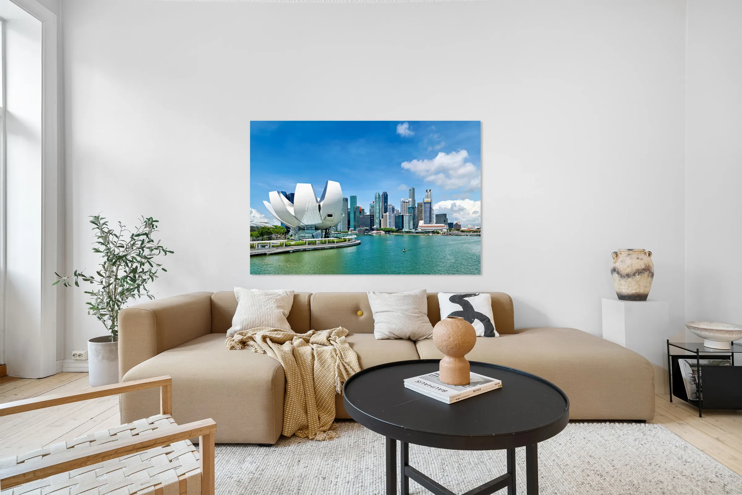 Visitors enjoy view of ArtScience Museum and city skyline in Sin Picture Frame Printing