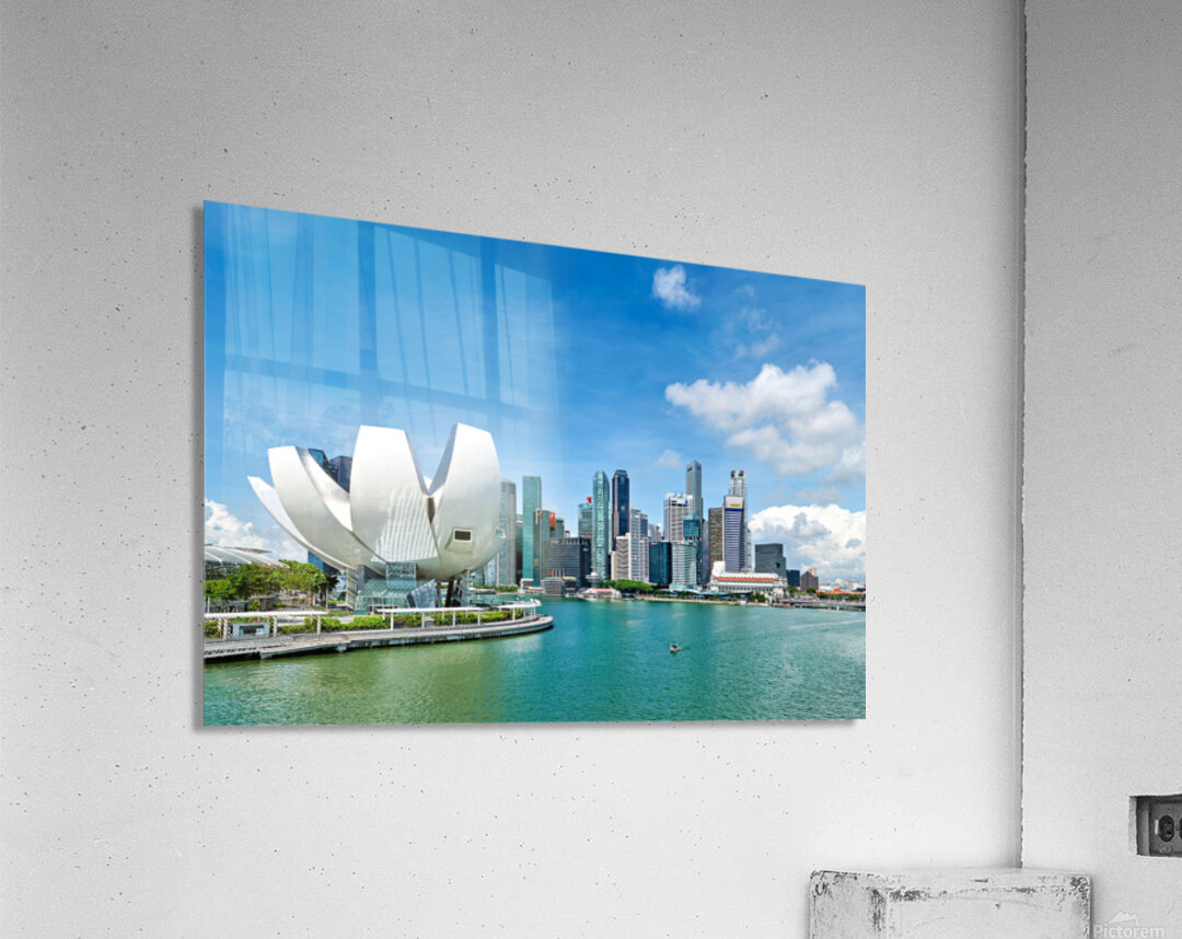 Get this artwork "Visitors enjoy view of ArtScience Museum and city skyline in Sin" in a framed print.