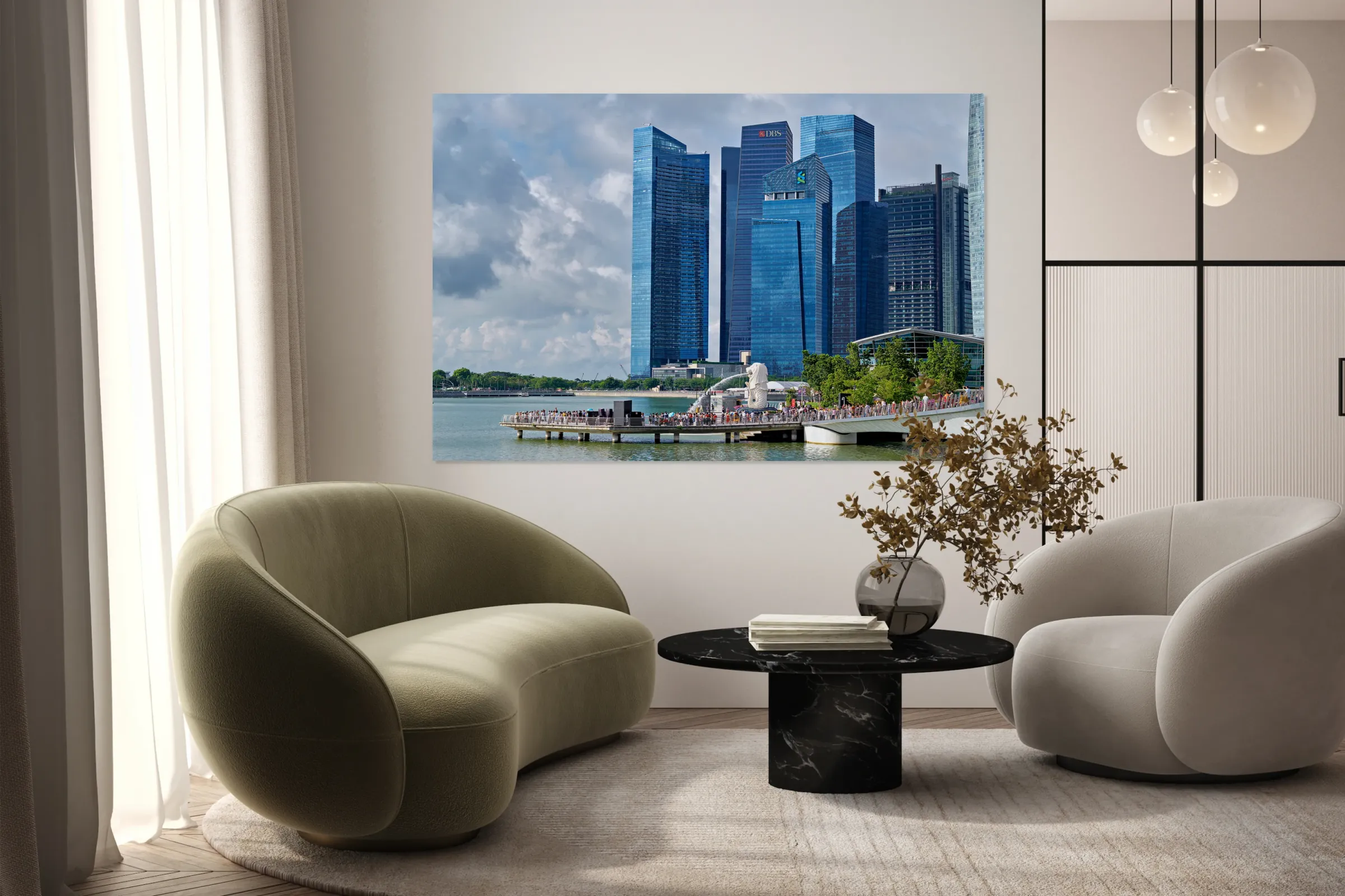 Get this artwork "People are walking near a bridge in Singapores financial distri" in a framed print.