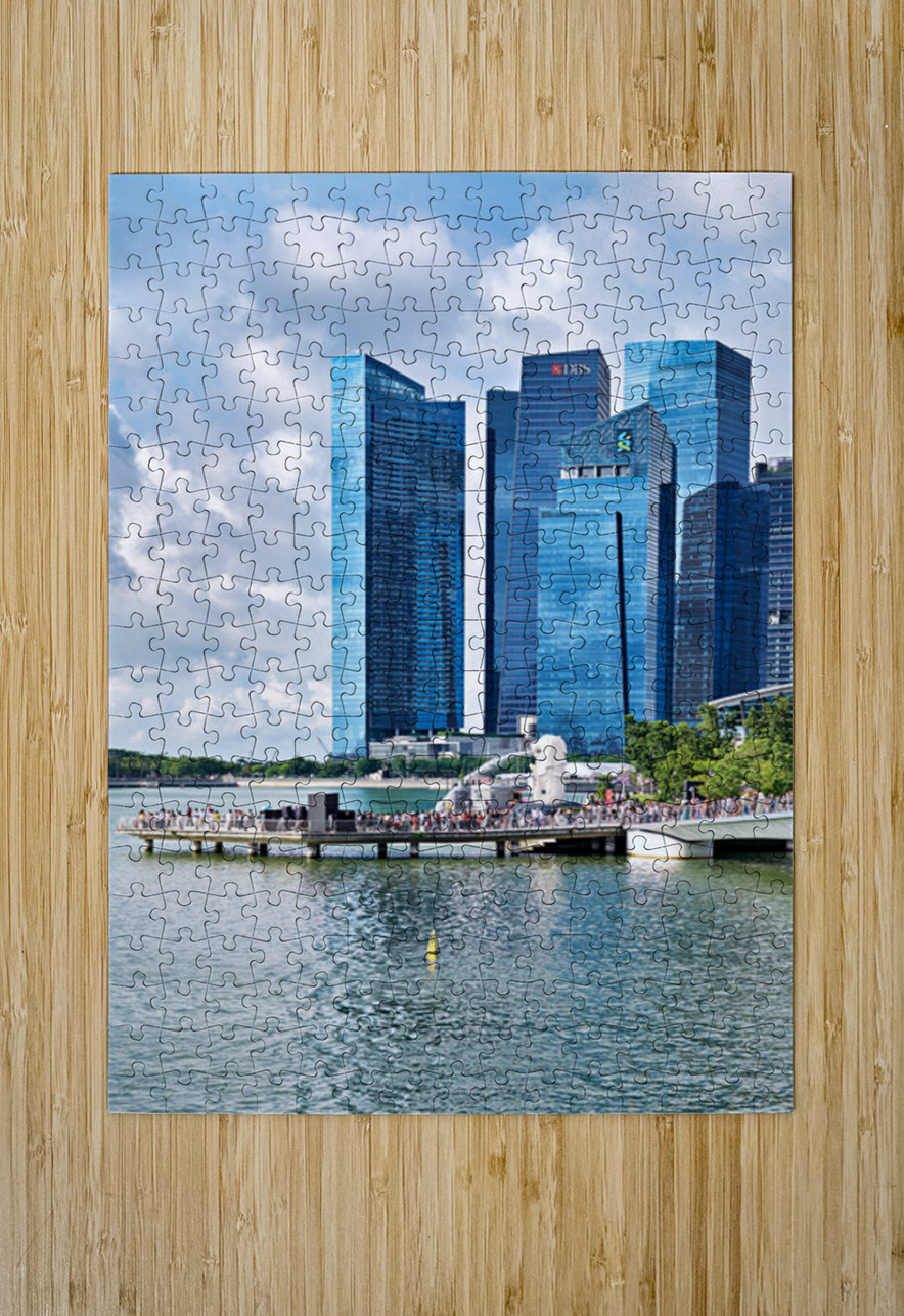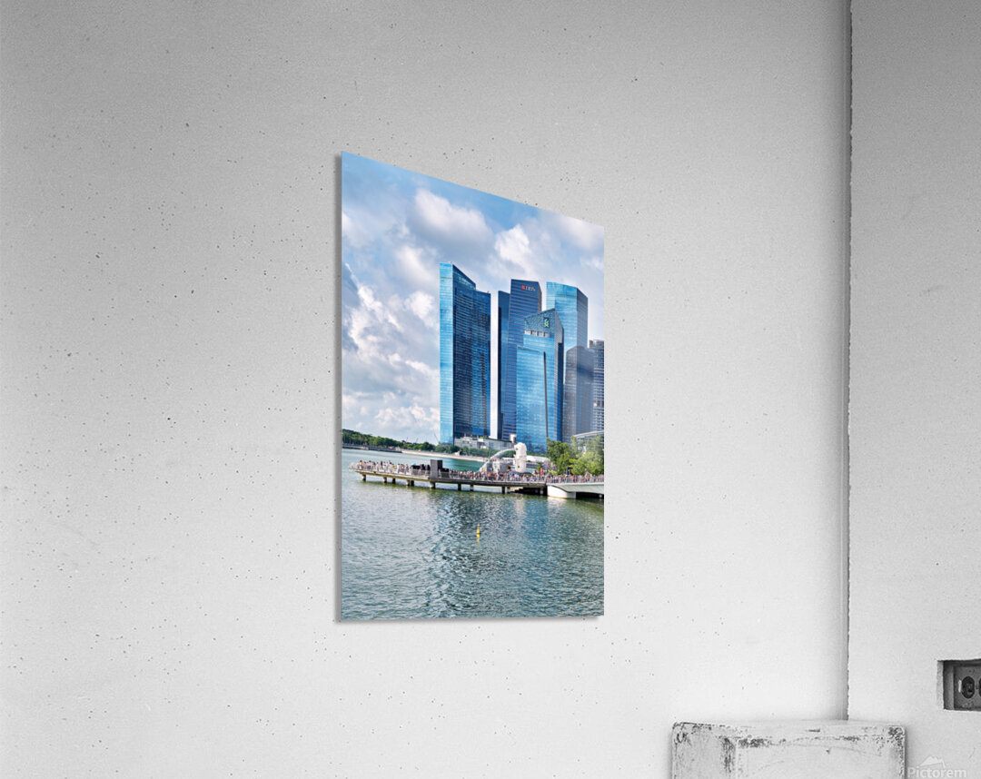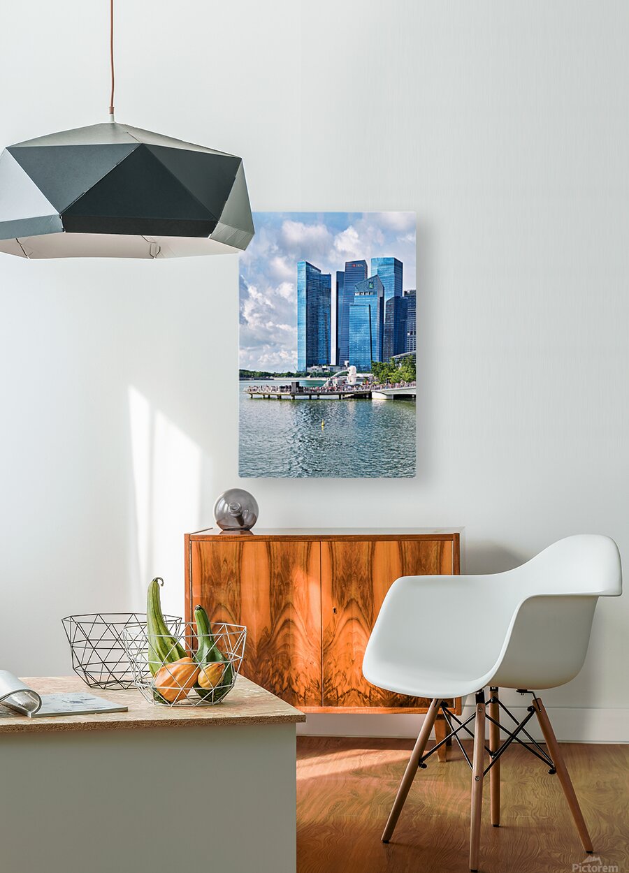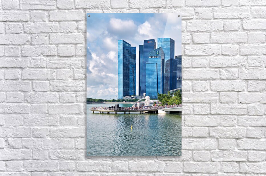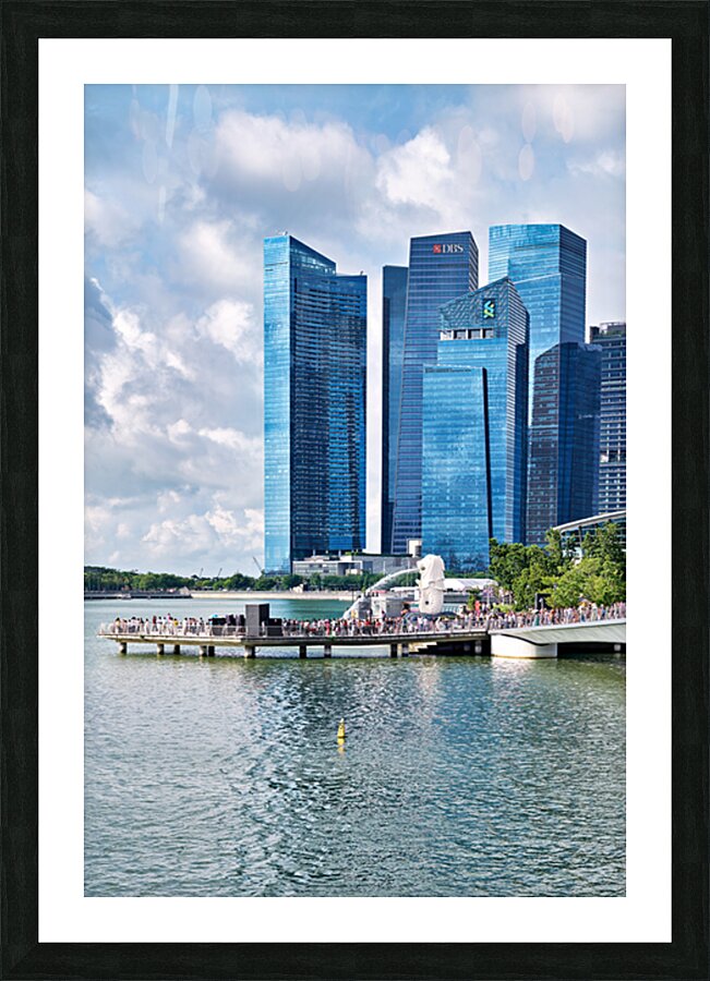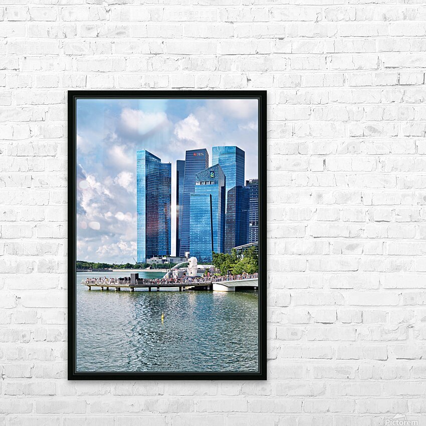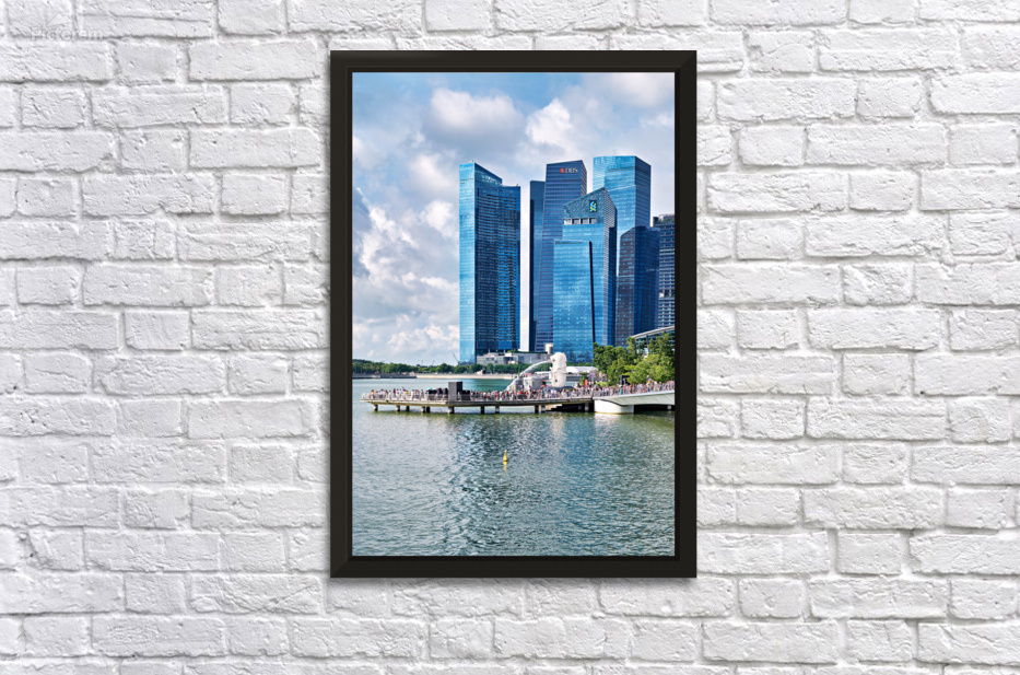 "People walk near bridge in Singapore financial district with bui" in a framed print.