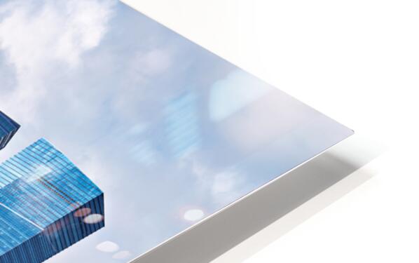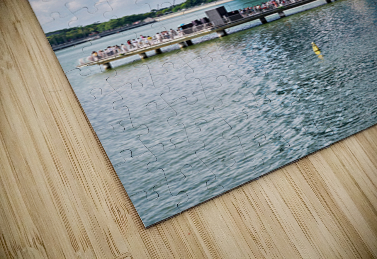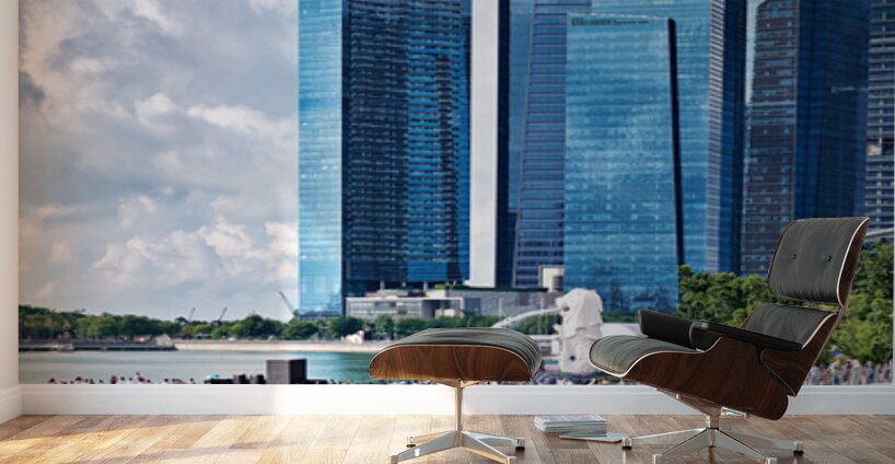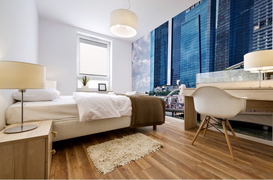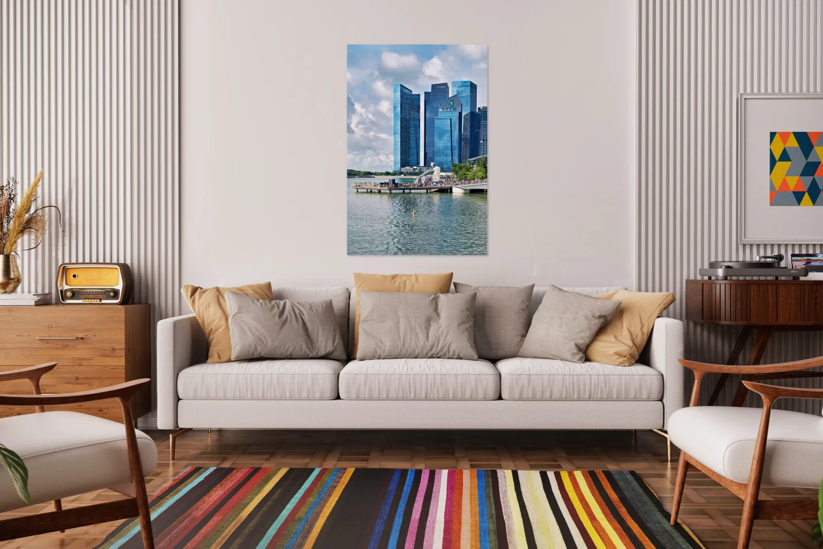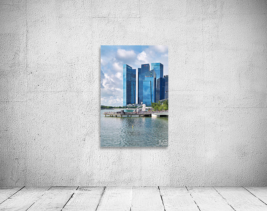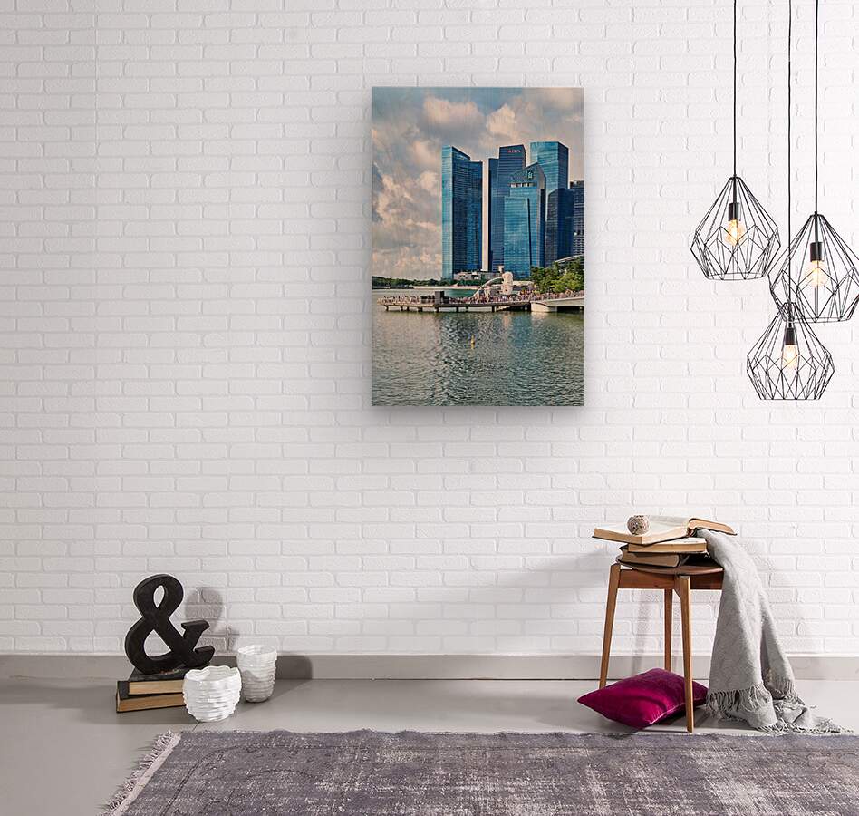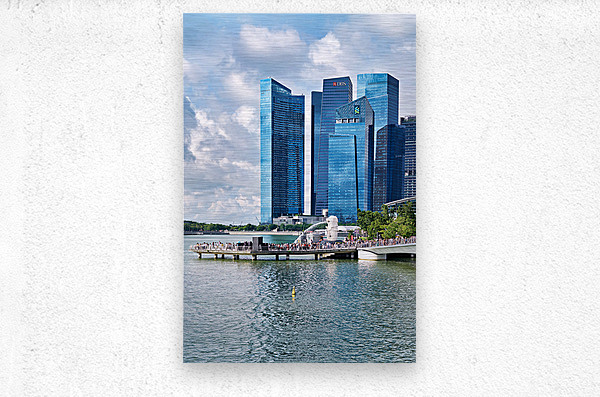 "People walk near bridge in Singapore financial district with bui" in a framed print.