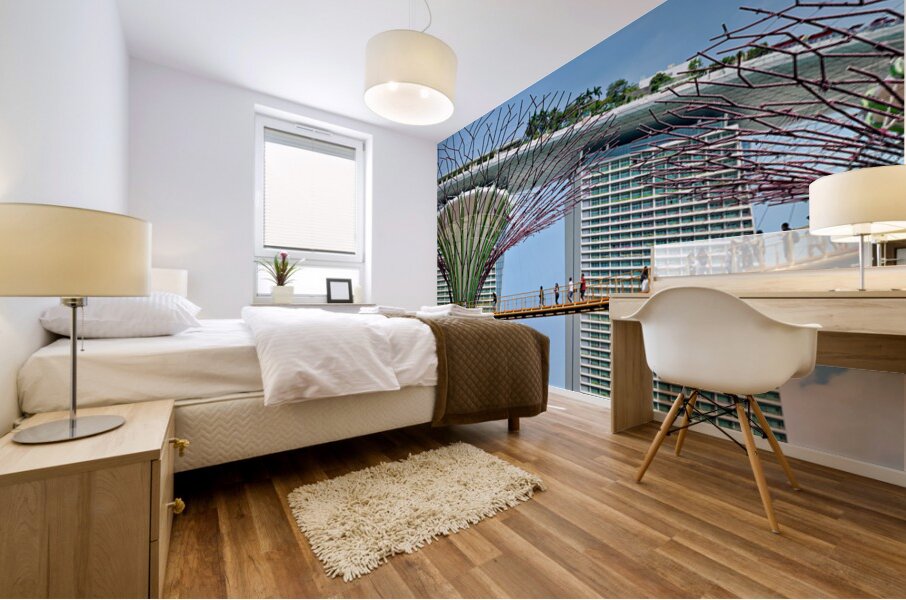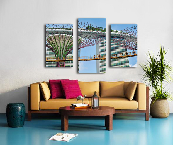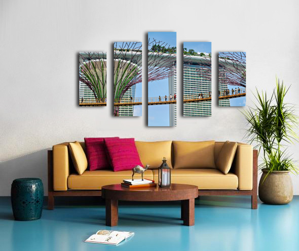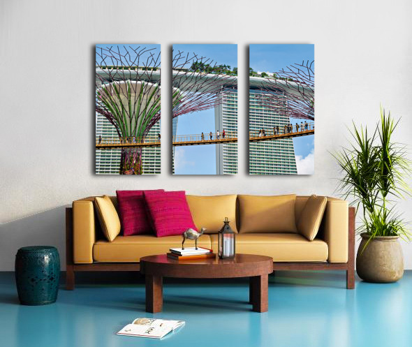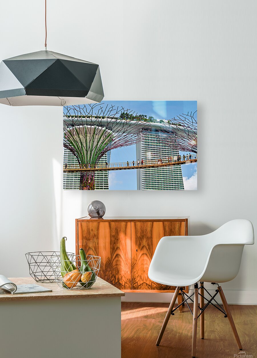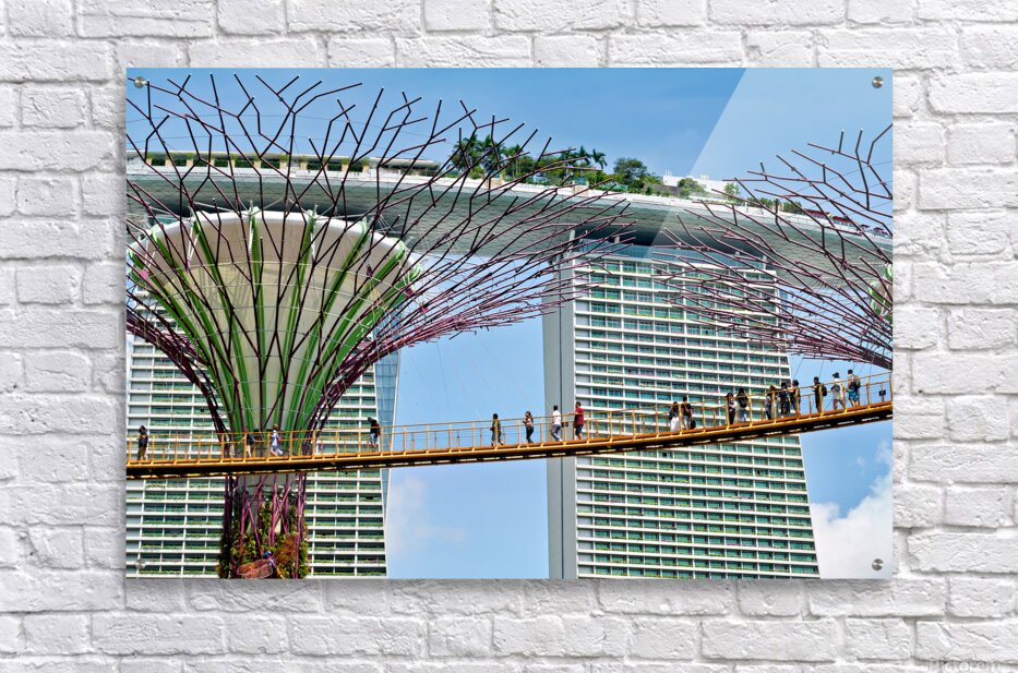 Get this artwork "People walk on bridge connecting to Supertree Grove in Singapore" in a framed print.